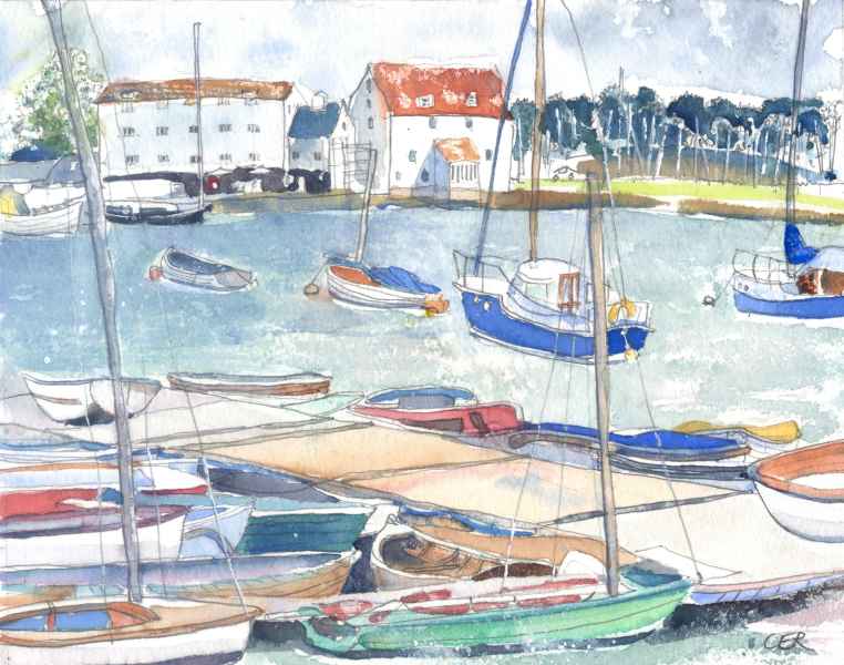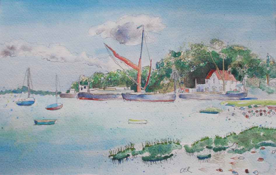 The sea here seemed to permeate the land with its various rivers. The gentle undulations of the country allowing for the vast blue skies. The whole, a blue and green watery landscape, beloved by sailors and punctuated by boats. A scene of estuaries, reed beds and mud flats brought alive by the cry of waterfowl.
