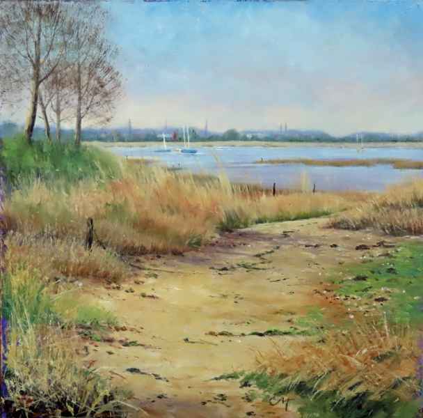 Her paintings have been shown widely in Suffolk and Essex in joint and single exhibitions and also in North East England. She has contributed articles in the “International Artist” on “painting the greens of England”. And also in the series of books “How did you paint that? 100 ways to paint Seascapes, Rivers and Lakes”.