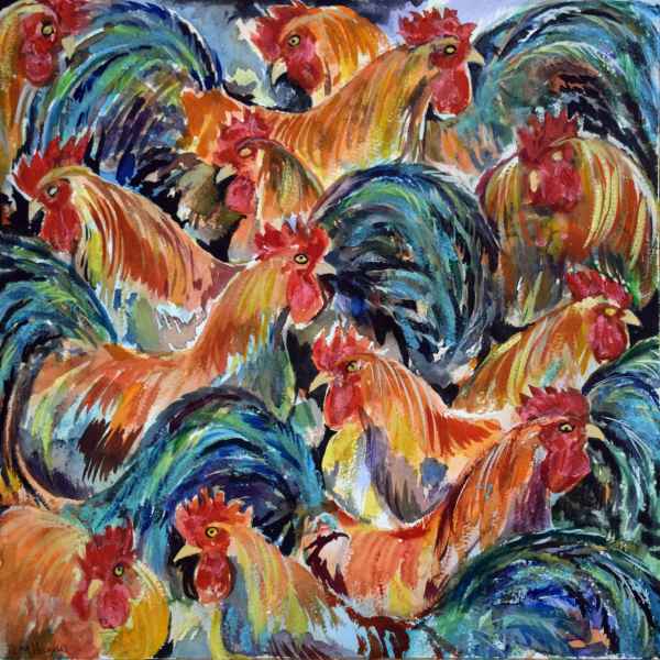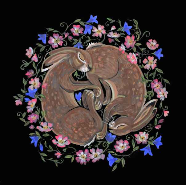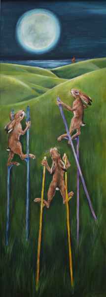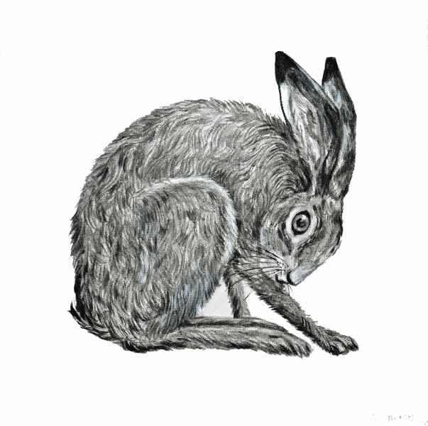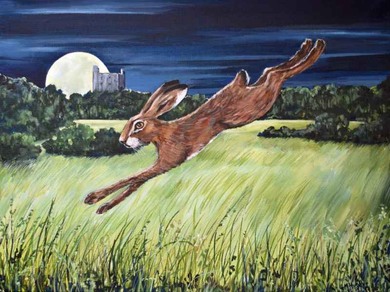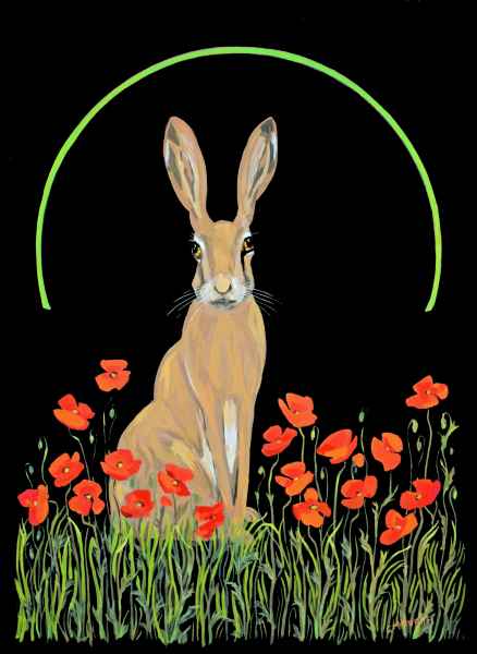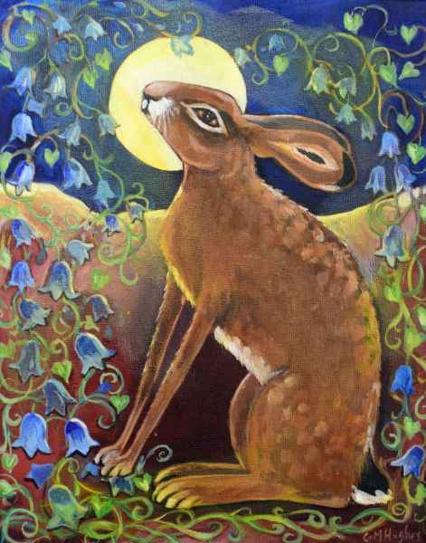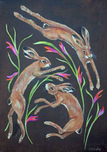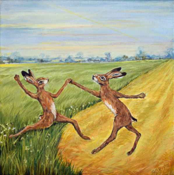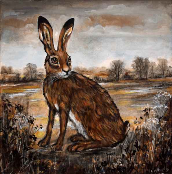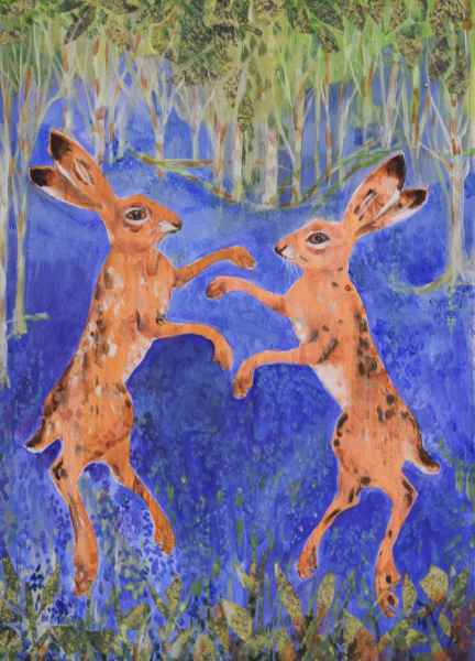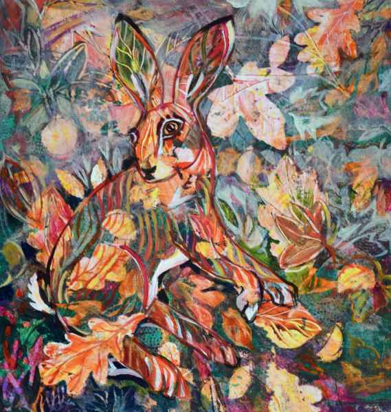 “I like experimenting with texture and colour, and changing and developing my ways of working. I love animals, especially hares and enjoy painting things that make people smile”.