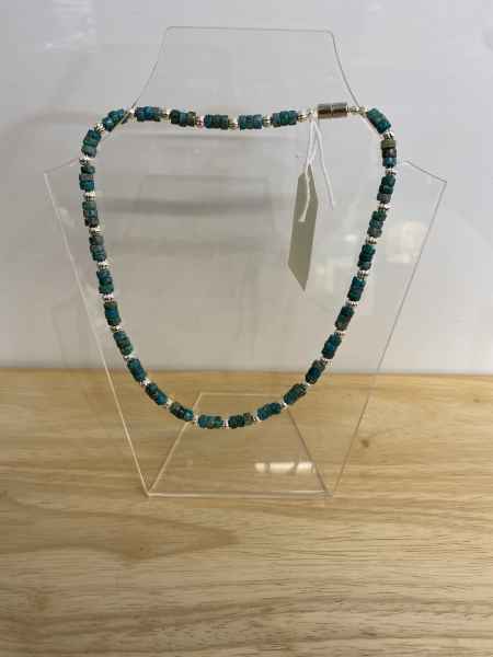 She uses magnetic clasps for ease and comfort, all of the jewellery is nickel and lead free.
