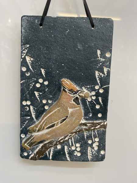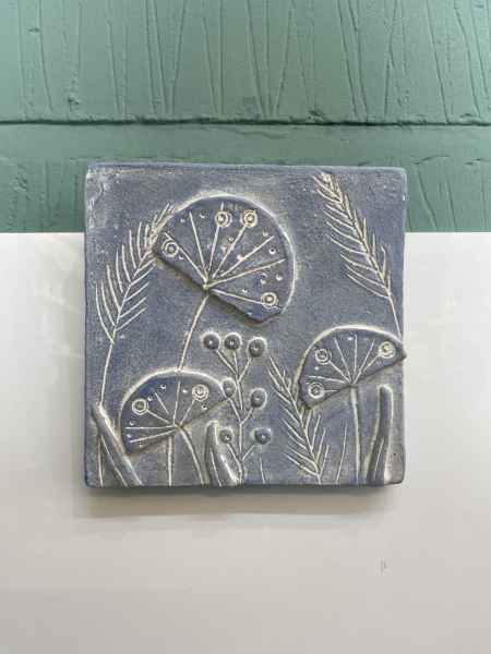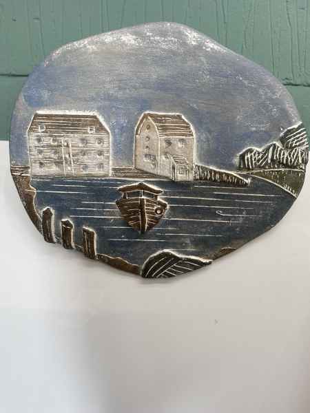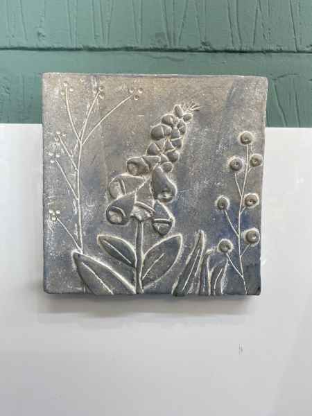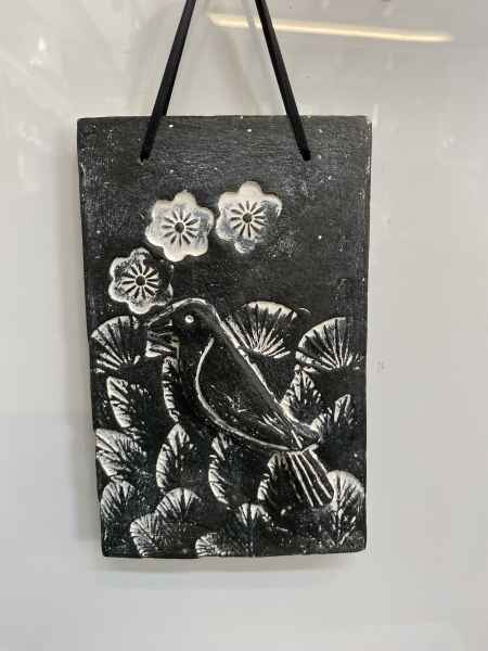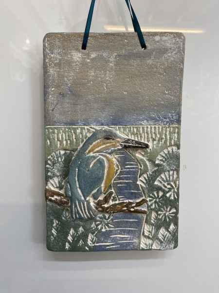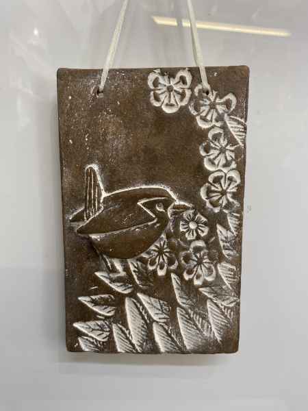 Dawn has always had a deep affinity with nature, landscape and wildlife with careers in design, horticulture and wildlife conservation. She pursued her art alongside and recently became a full-time artist. Flowers, textiles, nature, found objects and landscapes all provide inspiration. Her quirky wall plaques/hangings and mini sculptures are influenced by Alfred Wallis and other naive art, with it developing after a week working with the sculptor John Maltby. Mark making and clay additions create interest and the work undergoes three kiln firings.