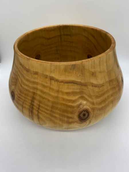 The actual turning is only a small part of the process. The majority of timber is sourced within Norfolk and Suffolk, from bona fide timber merchants. After the tree has been cut into planks, it is then air dried for a period of one year per one inch thickness. Alternatively Colin part turns the large bowls to approximate shape and depth with an overall wall thickness of one inch. These can then be dried in the wood store until the moisture content has reduced to 10% -12% before turning the final product.