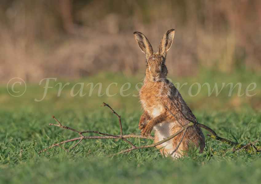 Although Frances loves taking photographs of all wildlife, the shy and secretive brown hares are her favourite. With their amazing eyesight and incredible burst of speed they are difficult subjects to catch on camera. No amount of expensive equipment will make up for good observation skills, endless patience and the ability to sit quietly in a ditch for hours!