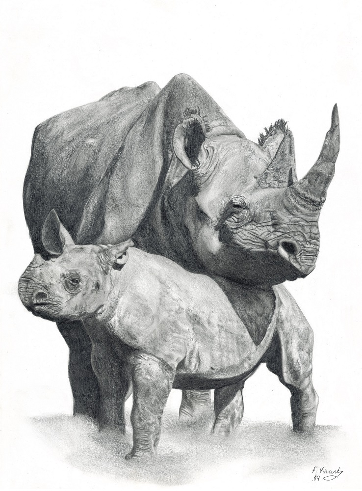 Mother and Baby Rhino - Limited Edition Mounted Print FV32-344