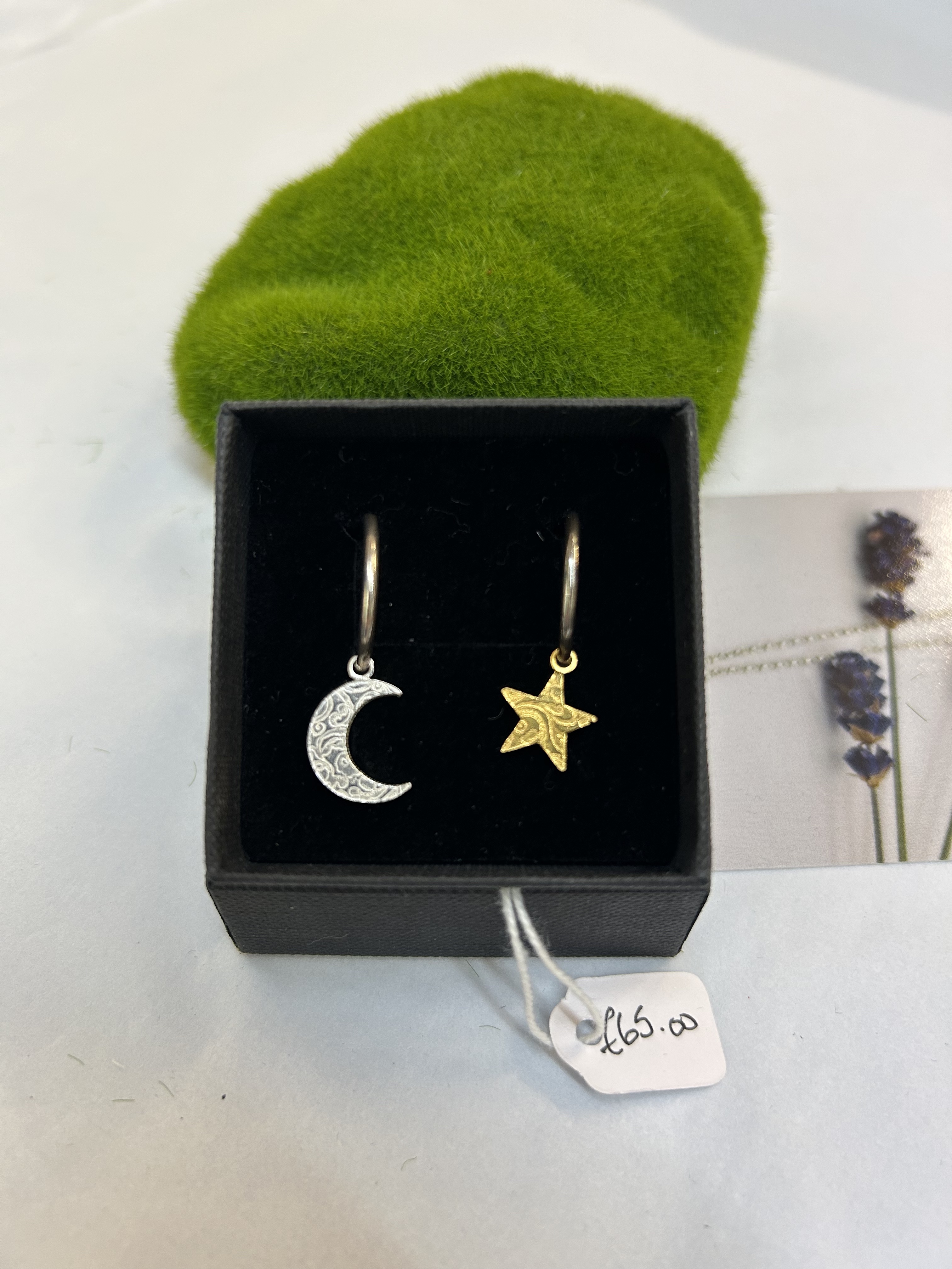 Sterling Silver Hoops with Moon and Gold Star CSW31-023