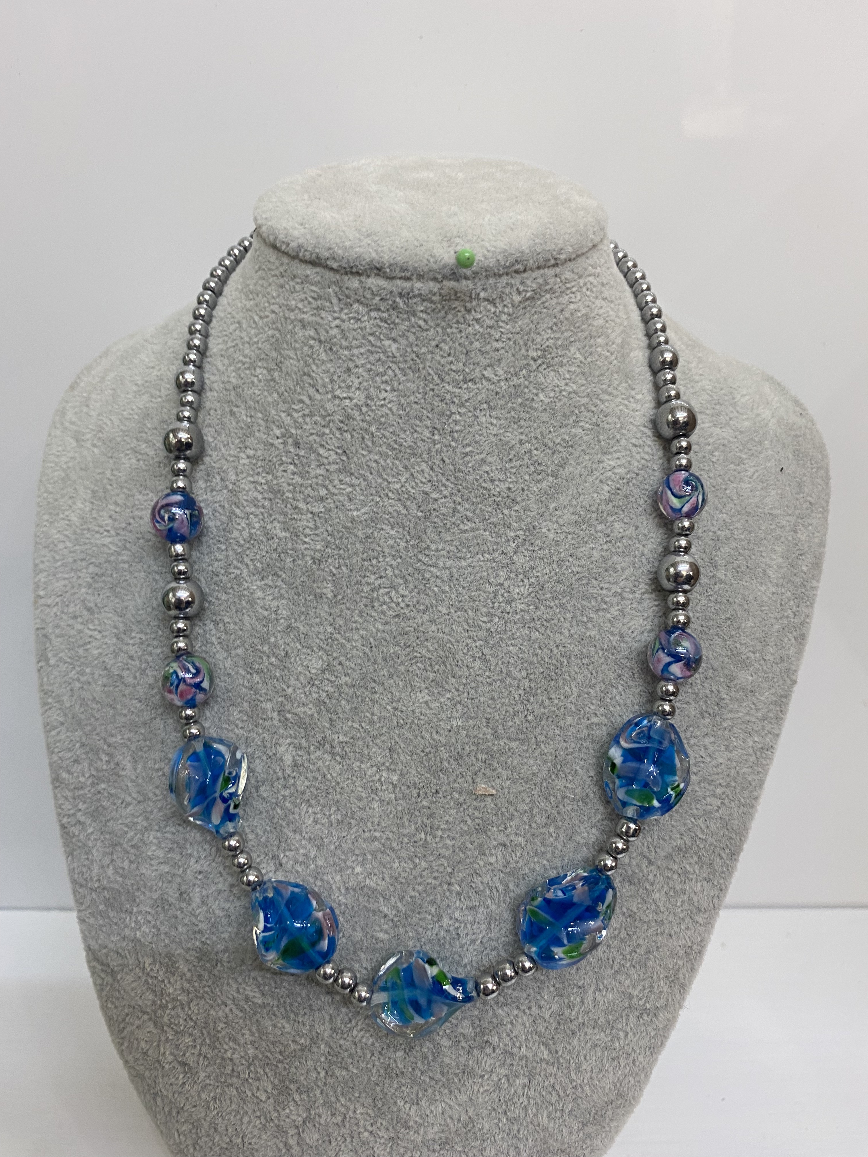 Blue Glass Lampwork Silver Necklace SD37-2624