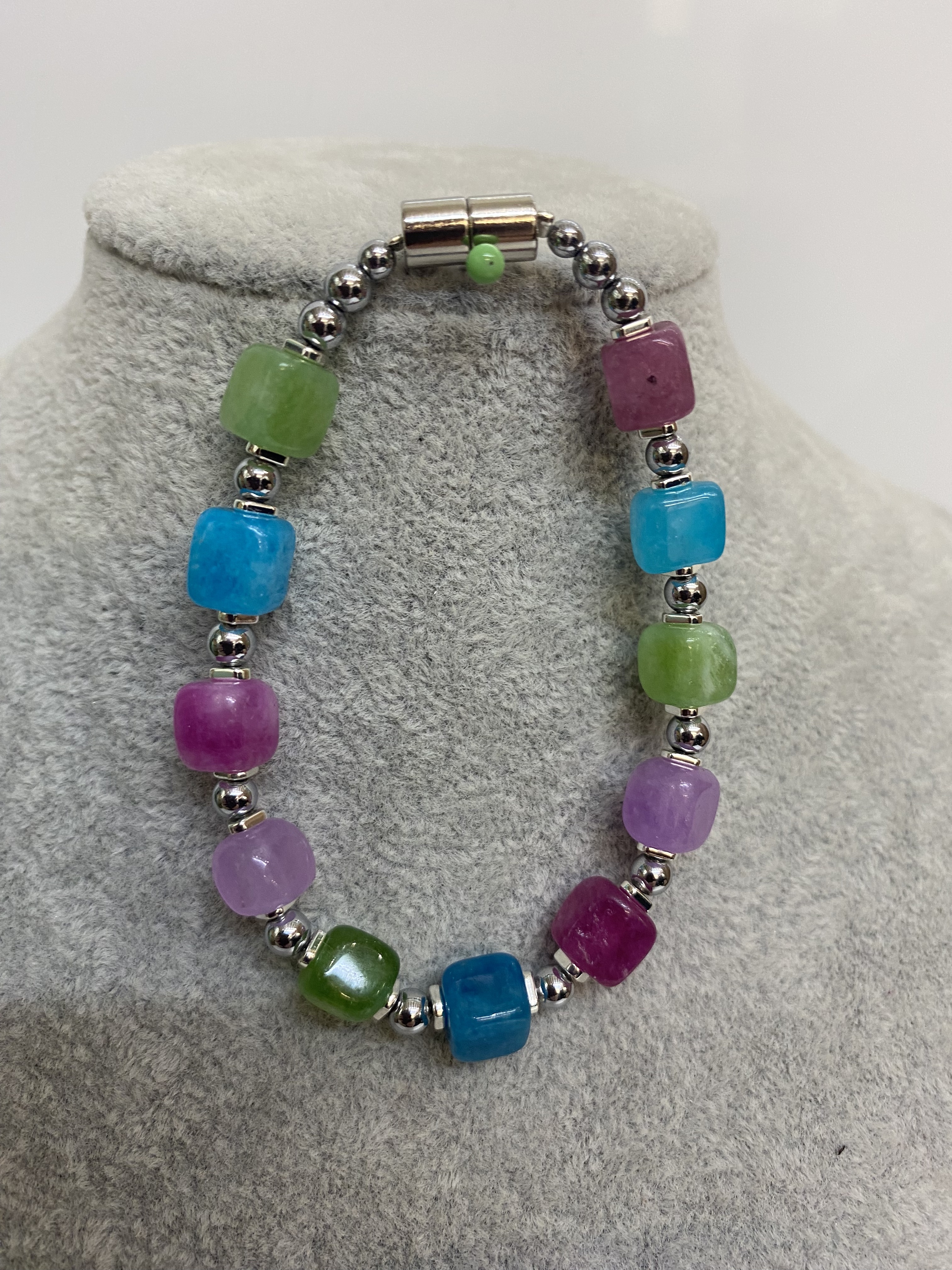 Silver Plated Bracelet with Magnetic Clasp.  Hypoallergenic.  The UK delivery prices can be viewed once the item has been added to your basket. For overseas orders, please let us know through the website using the Contact Form.