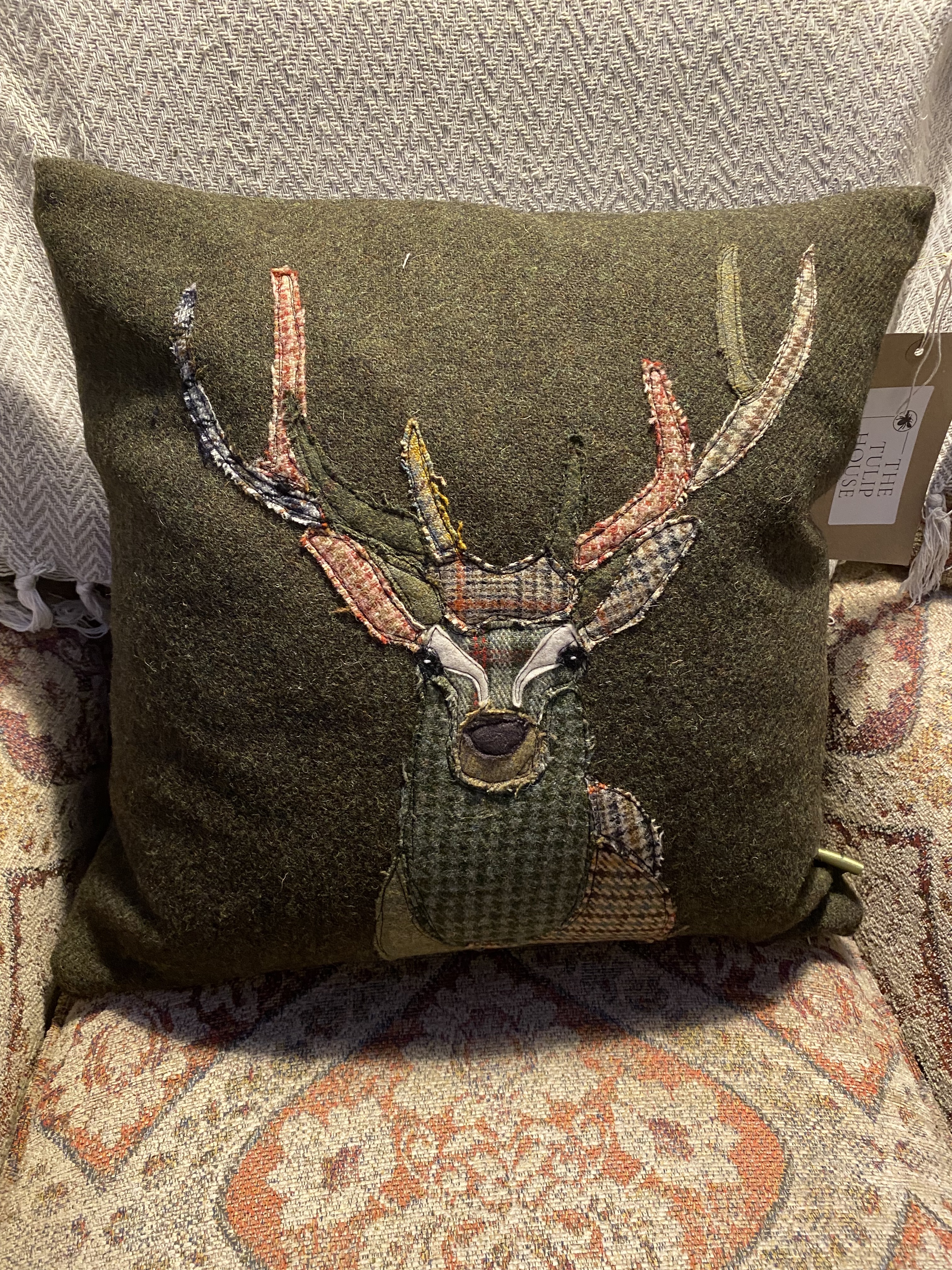 Handmade Cushion - Stag on Green Tweed TH64-285
