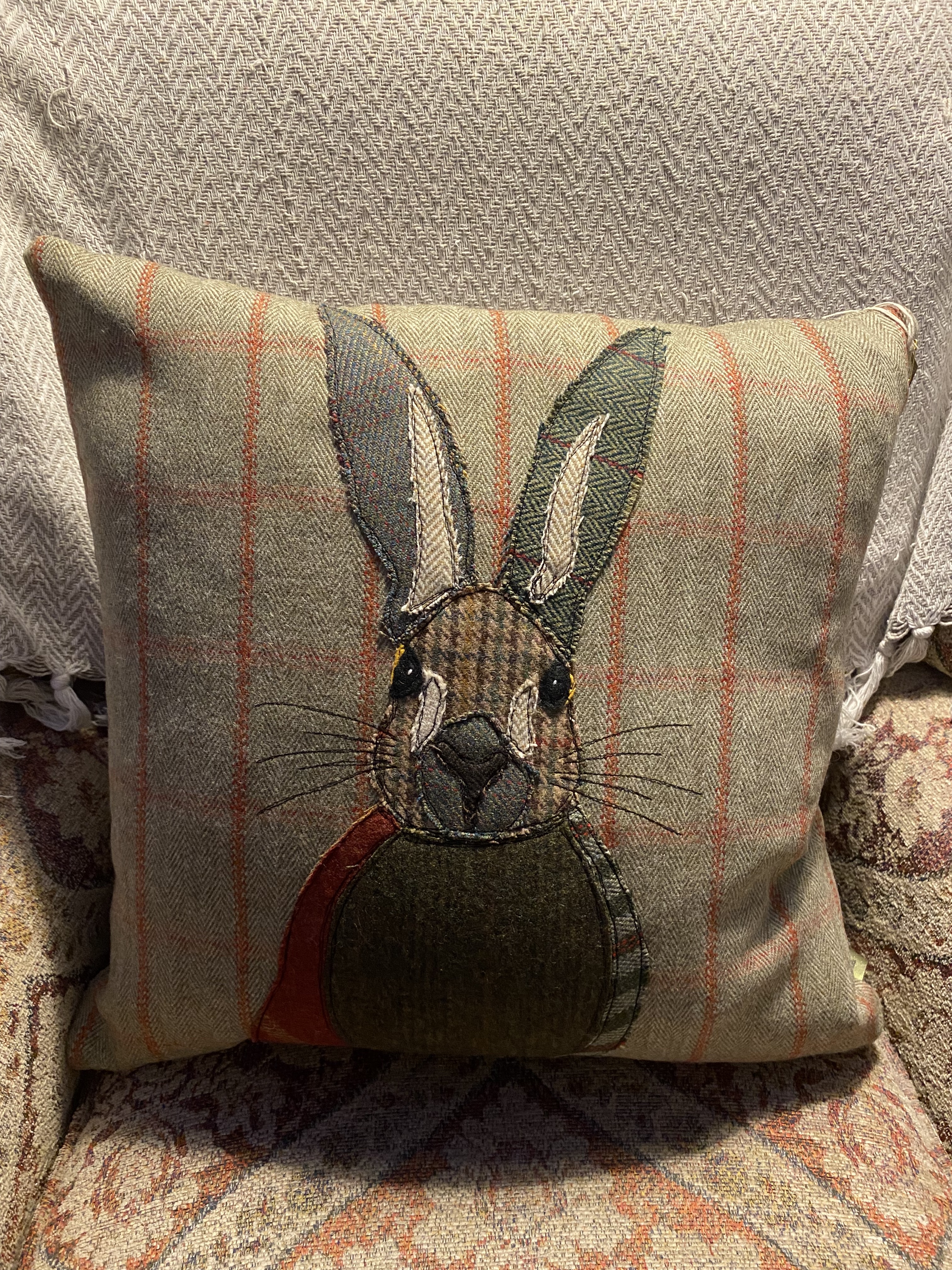 Handmade Cushion - Big Ears Hare on Tweed TH64-286