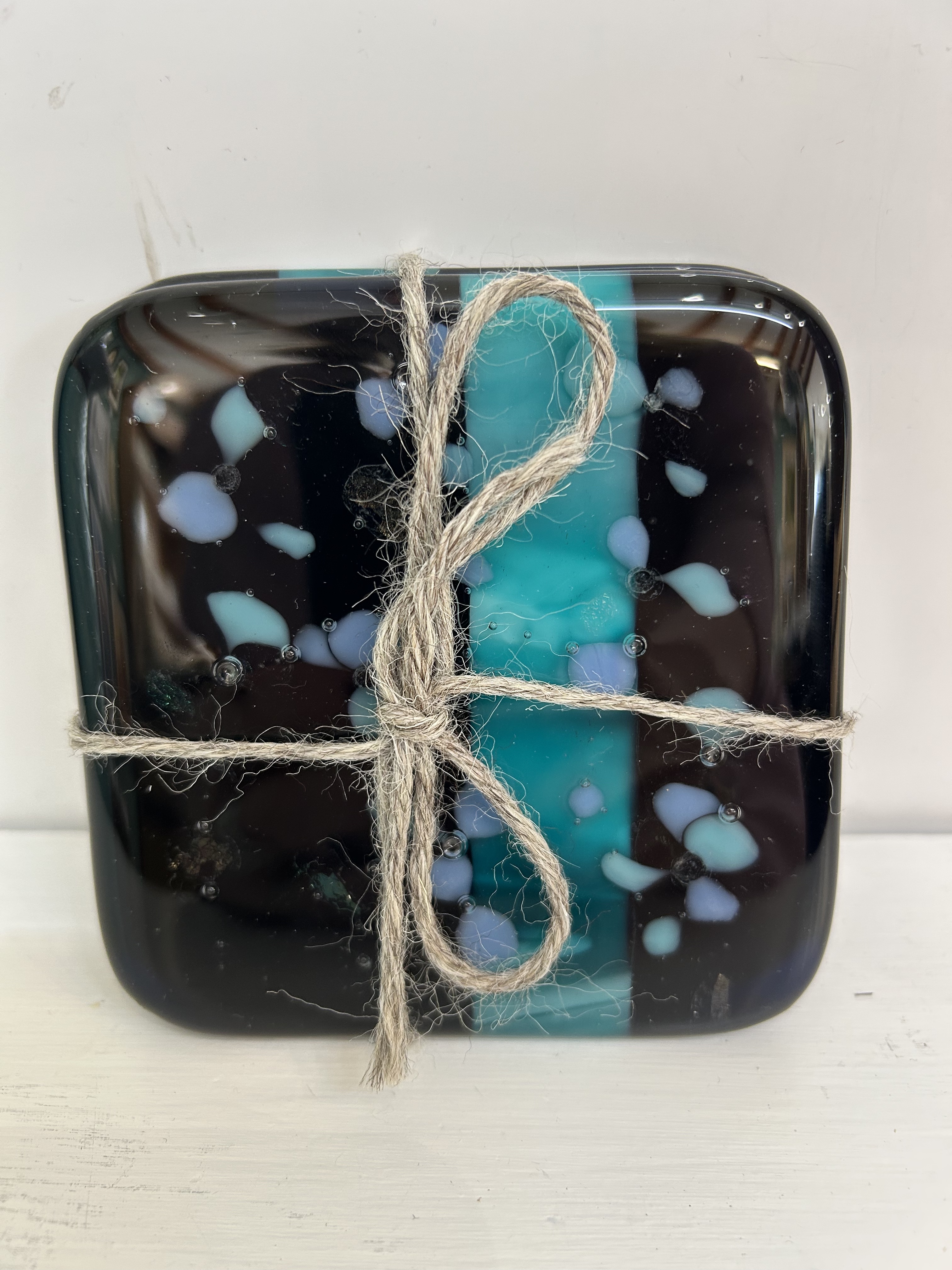 Bullseye Glass Approx dimensions 90mm Square The UK delivery prices can be viewed once the item has been added to your basket. For overseas orders, please let us know through the website using the Contact Form.