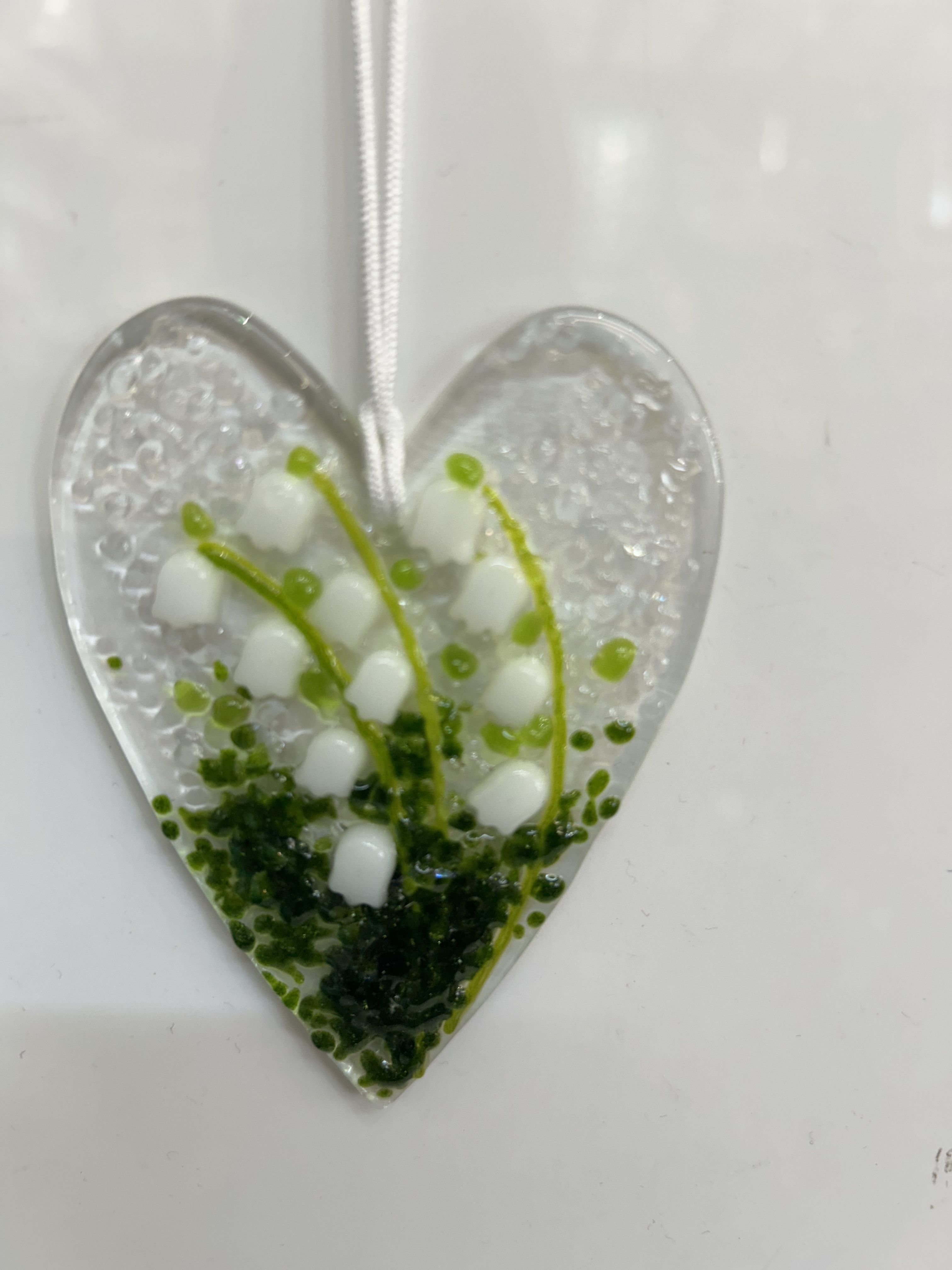 Narrow Small Lily of the Valley Glass Heart SMK86-621