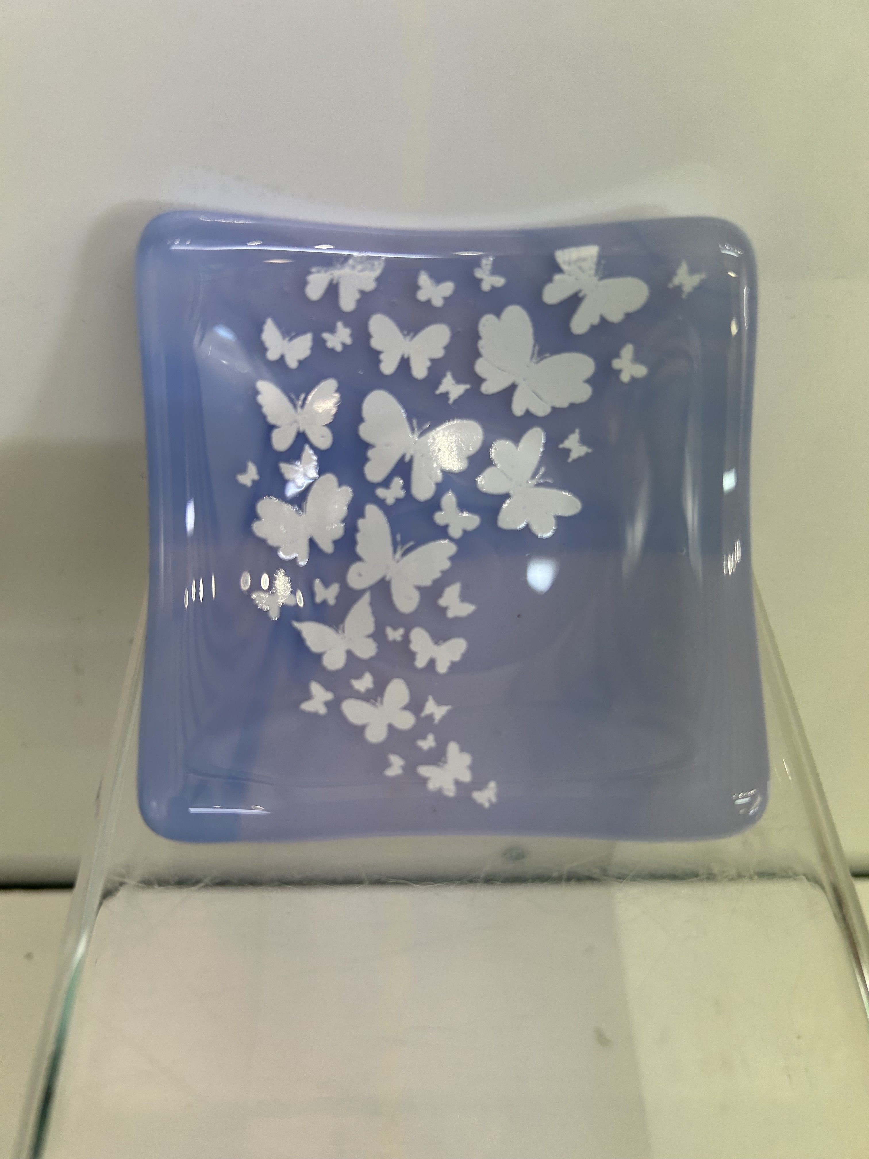 Bullseye Glass Approx dimensions Square 80mm x 80mm x 10mm The UK delivery prices can be viewed once the item has been added to your basket. For overseas orders, please let us know through the website using the Contact form