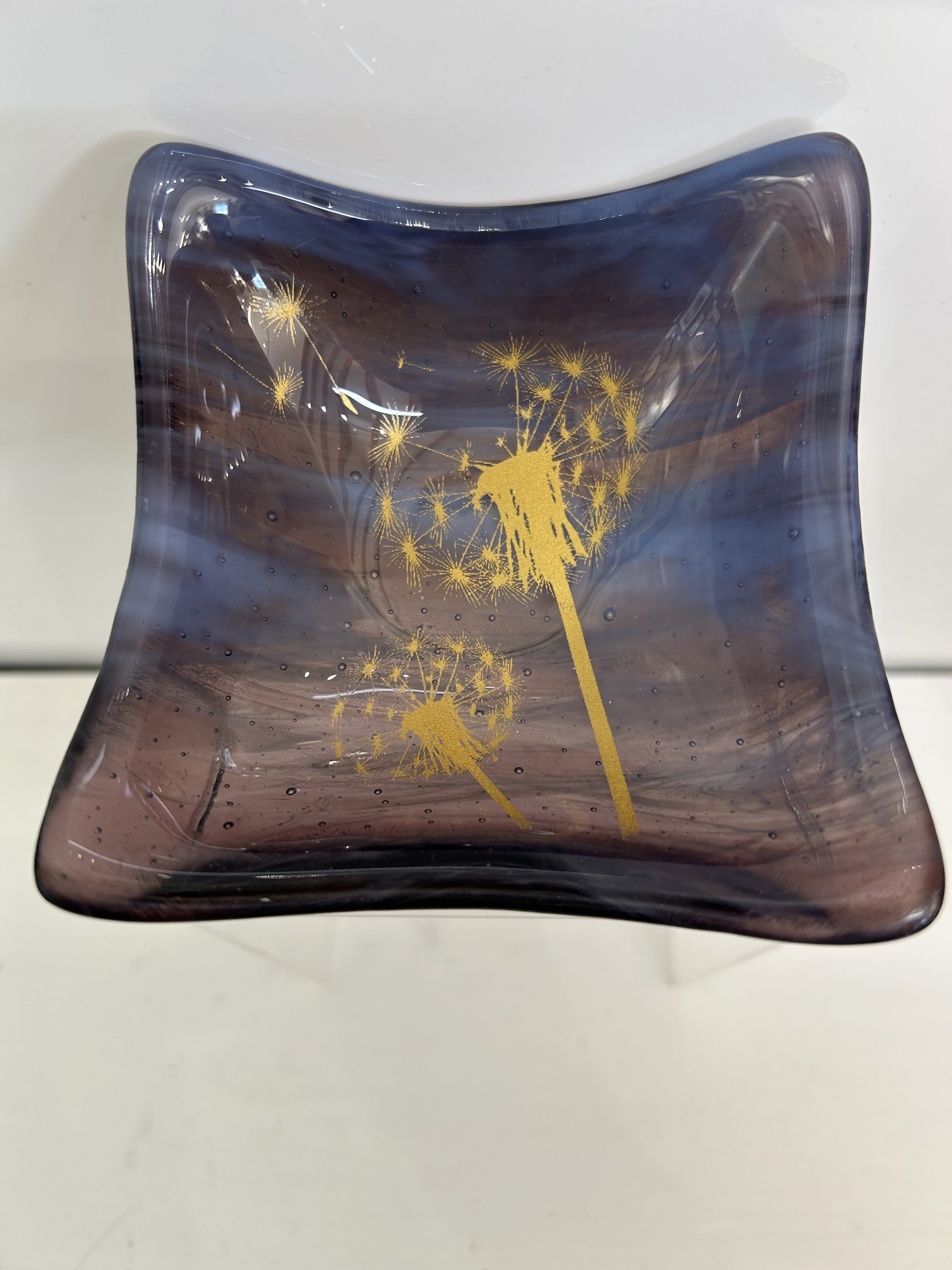 Bullseye Glass Approx dimensions Square 120mm x 120mm x 10mm The UK delivery prices can be viewed once the item has been added to your basket. For overseas orders, please let us know through the website using the Contact form