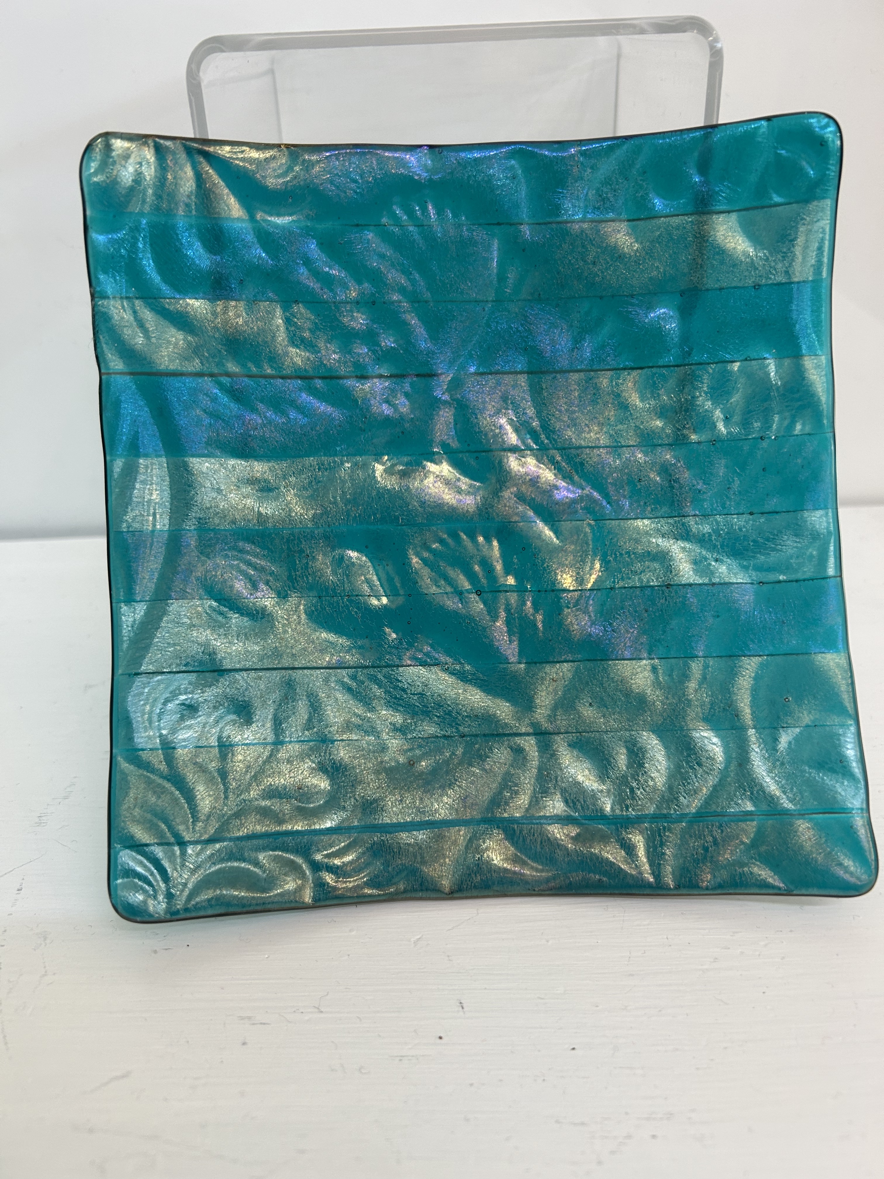 Bullseye Glass Approx dimensions Square 150mm x 150mm x 10mm The UK delivery prices can be viewed once the item has been added to your basket. For overseas orders, please let us know through the website using the Contact form