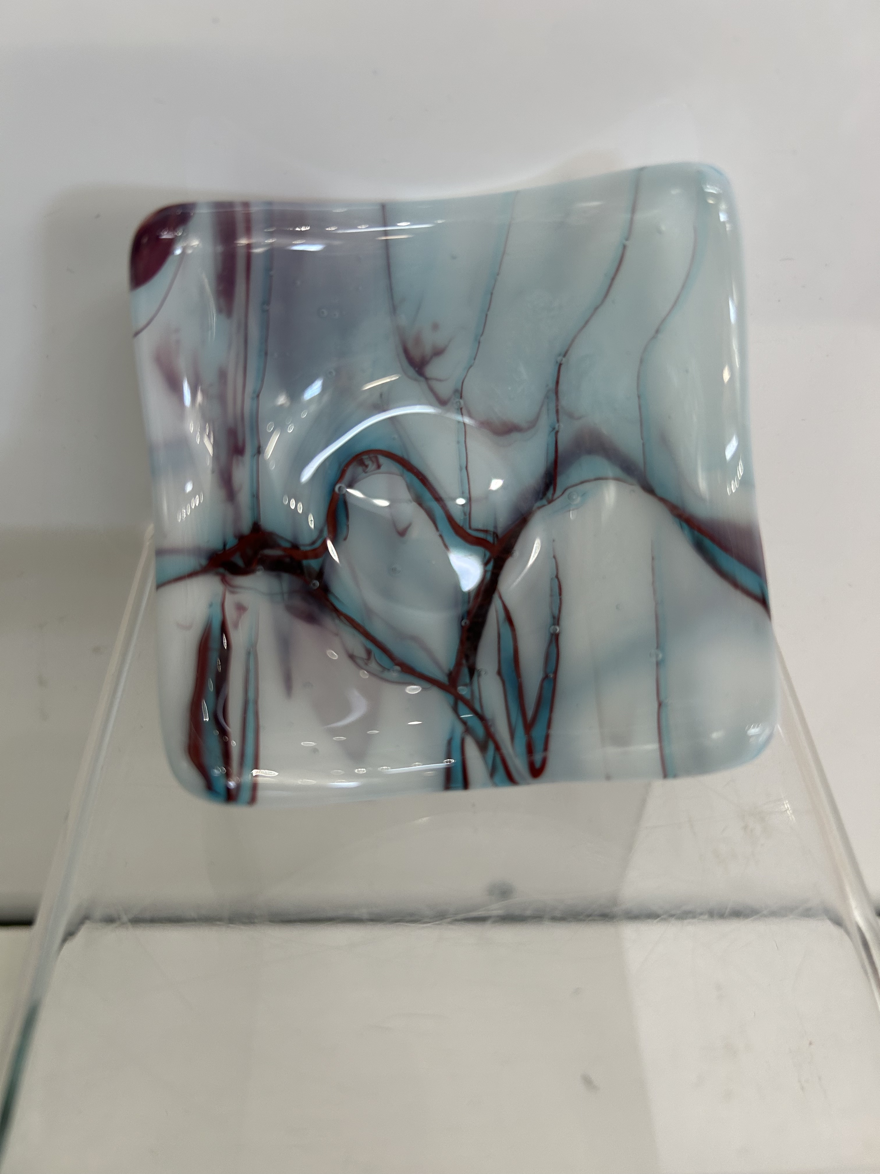 Blue/Red Streaky Textured Glass Trinket Dish SMK86-629