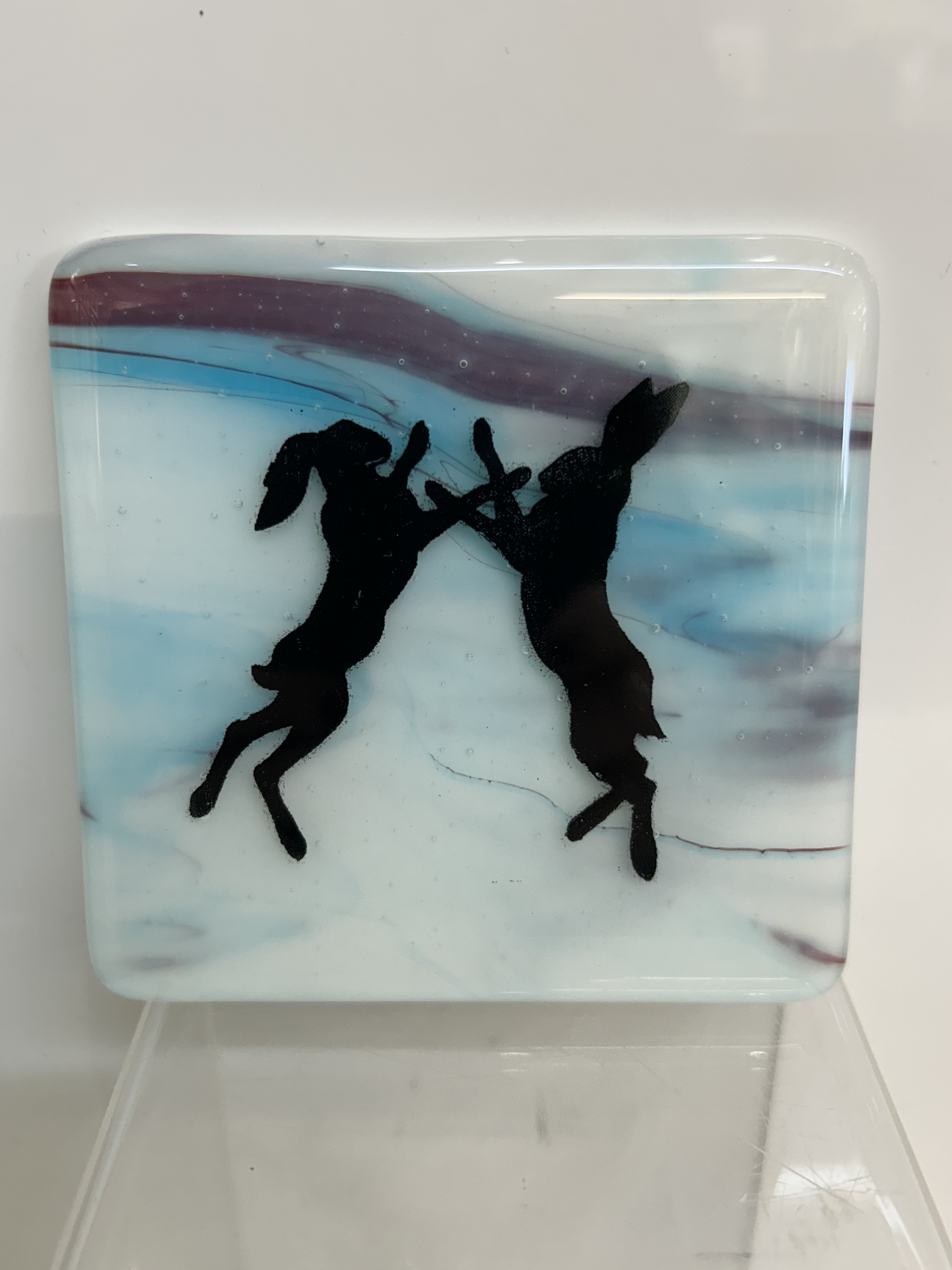 Glass Coaster - Blue/Red Streaky Boxing Hares SMK86-652