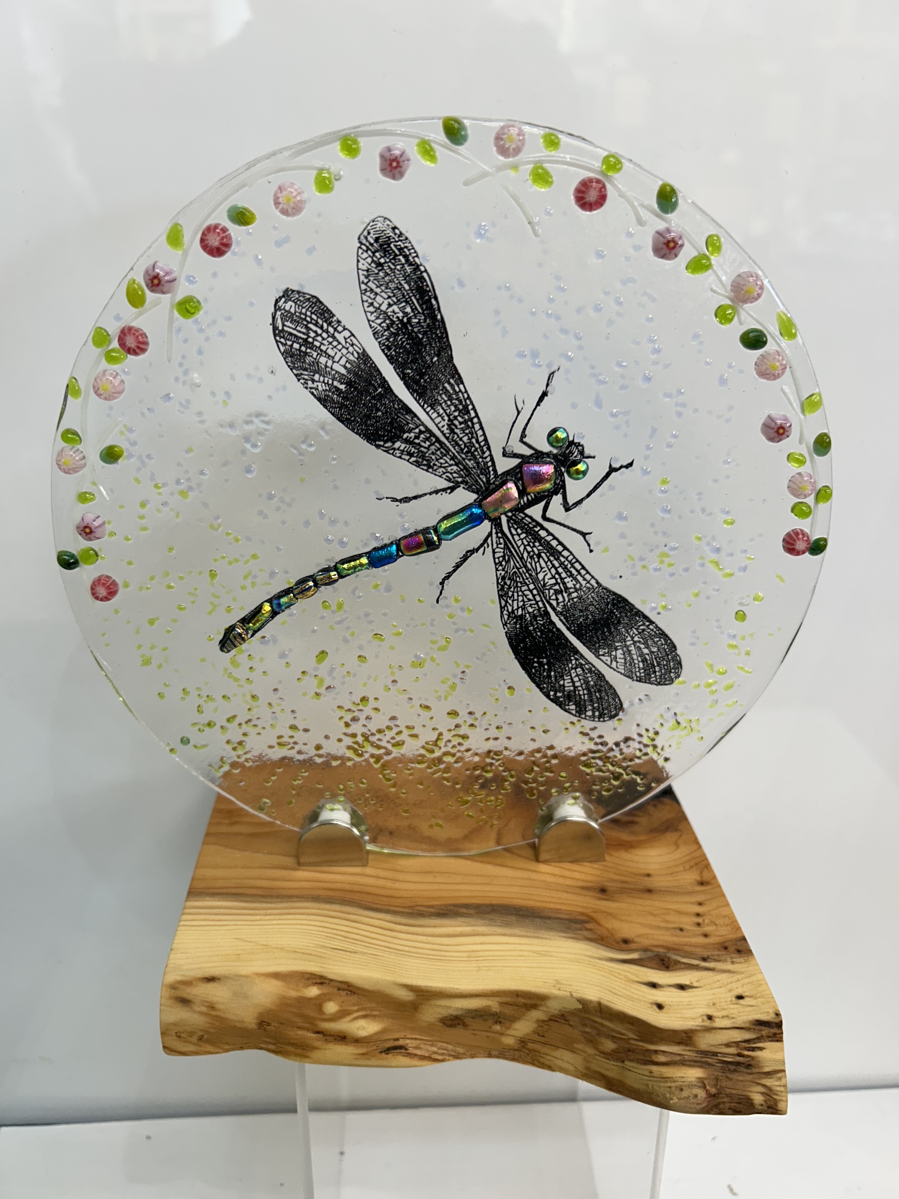 Bullseye Glass Approx dimensions D = 190mm, in Wooden Base
