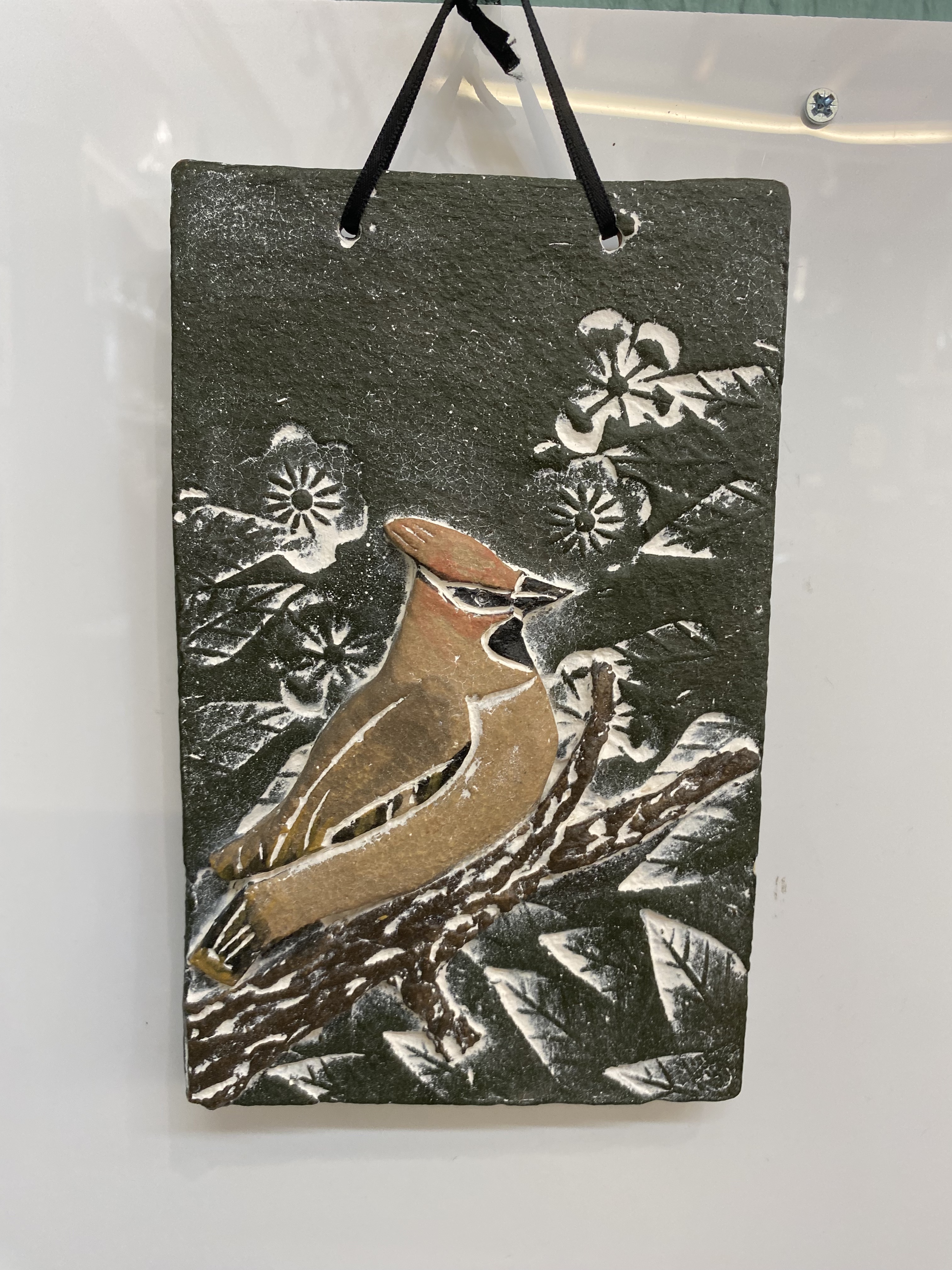 Bird Hanger - Waxwing - Green Background DI33-013