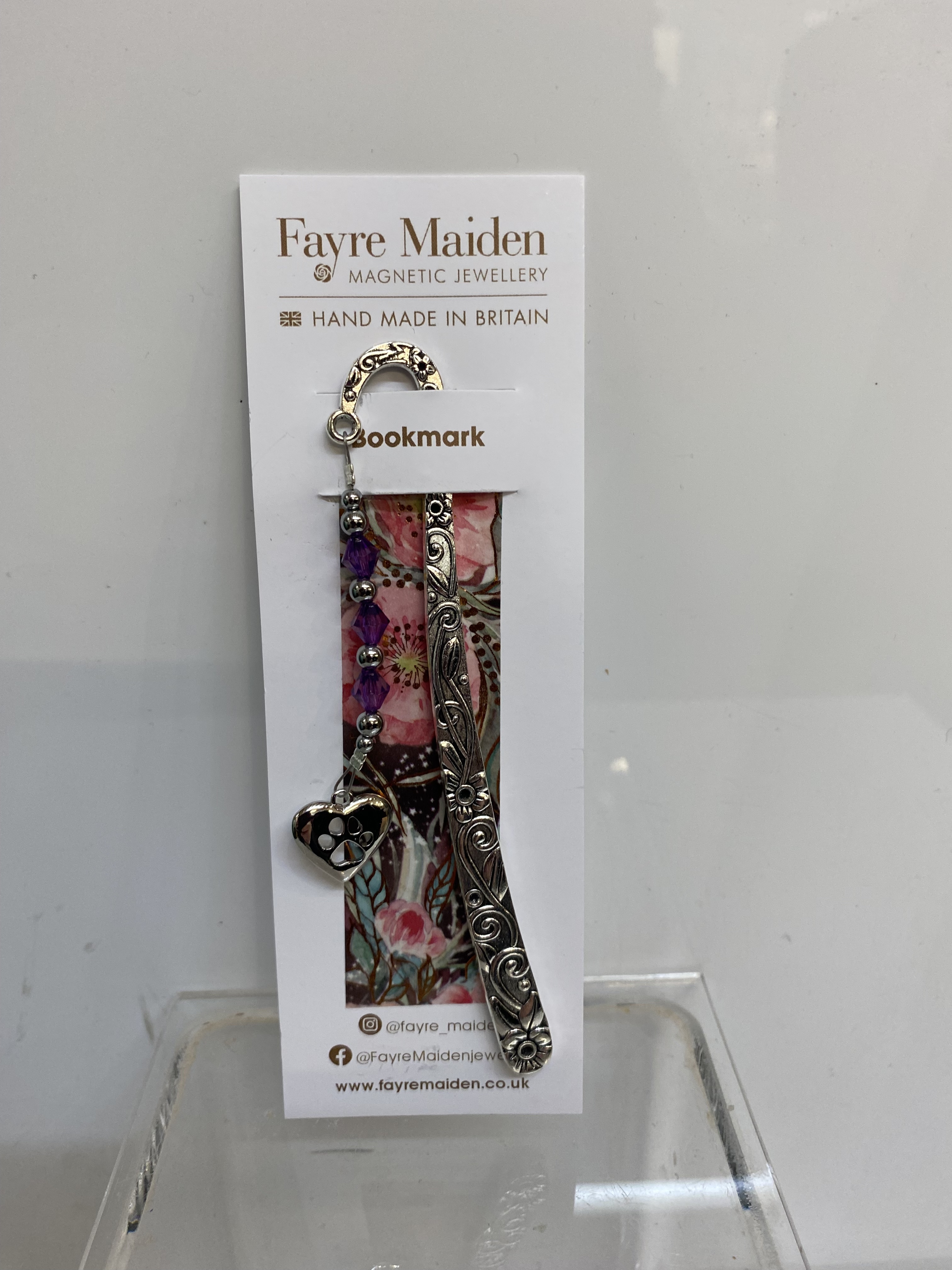 Heart Paw Print Silver Bookmark SD37-2701