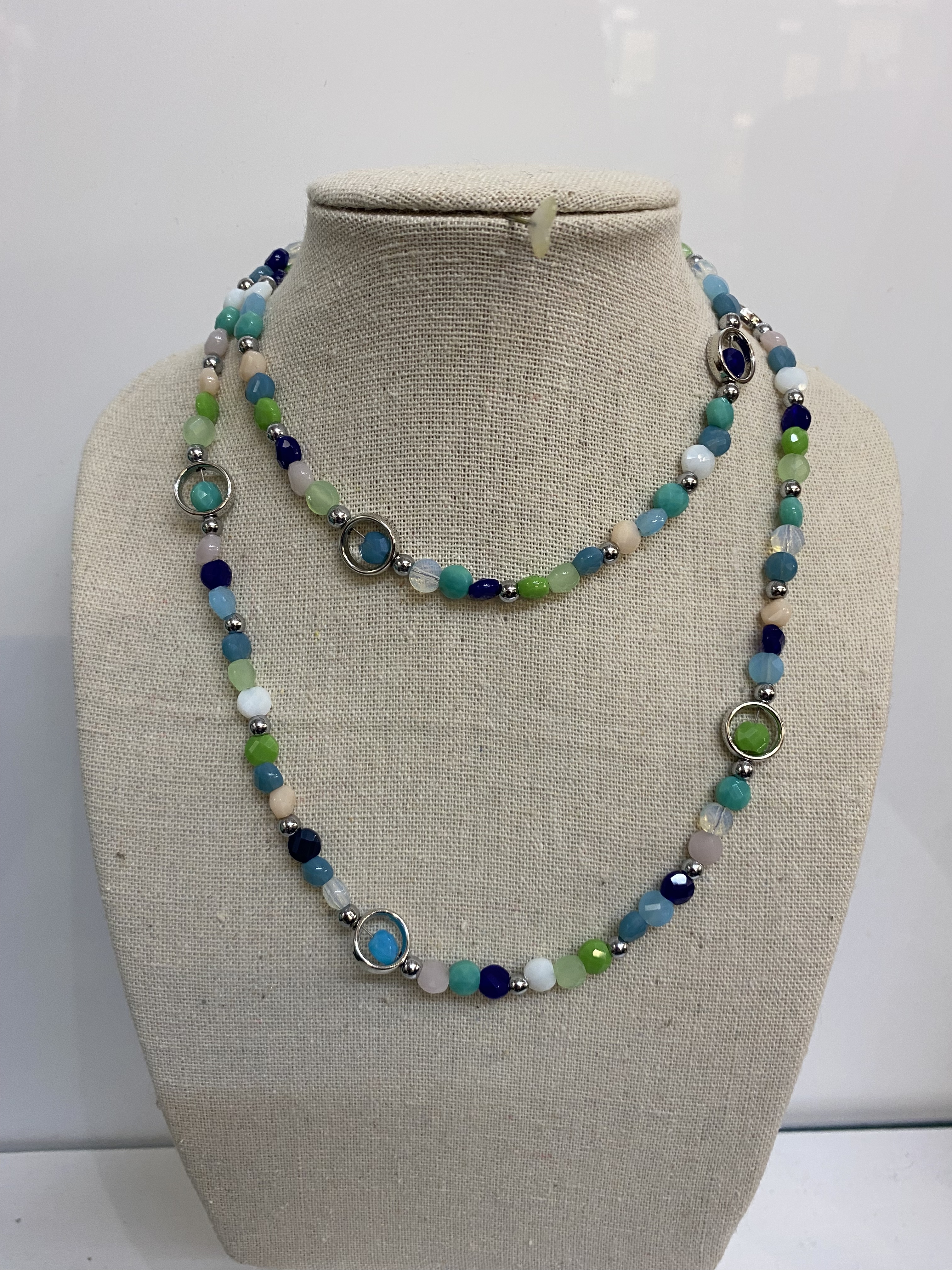 Multi Pastel Beads Silver Necklace - Long SD37-2704