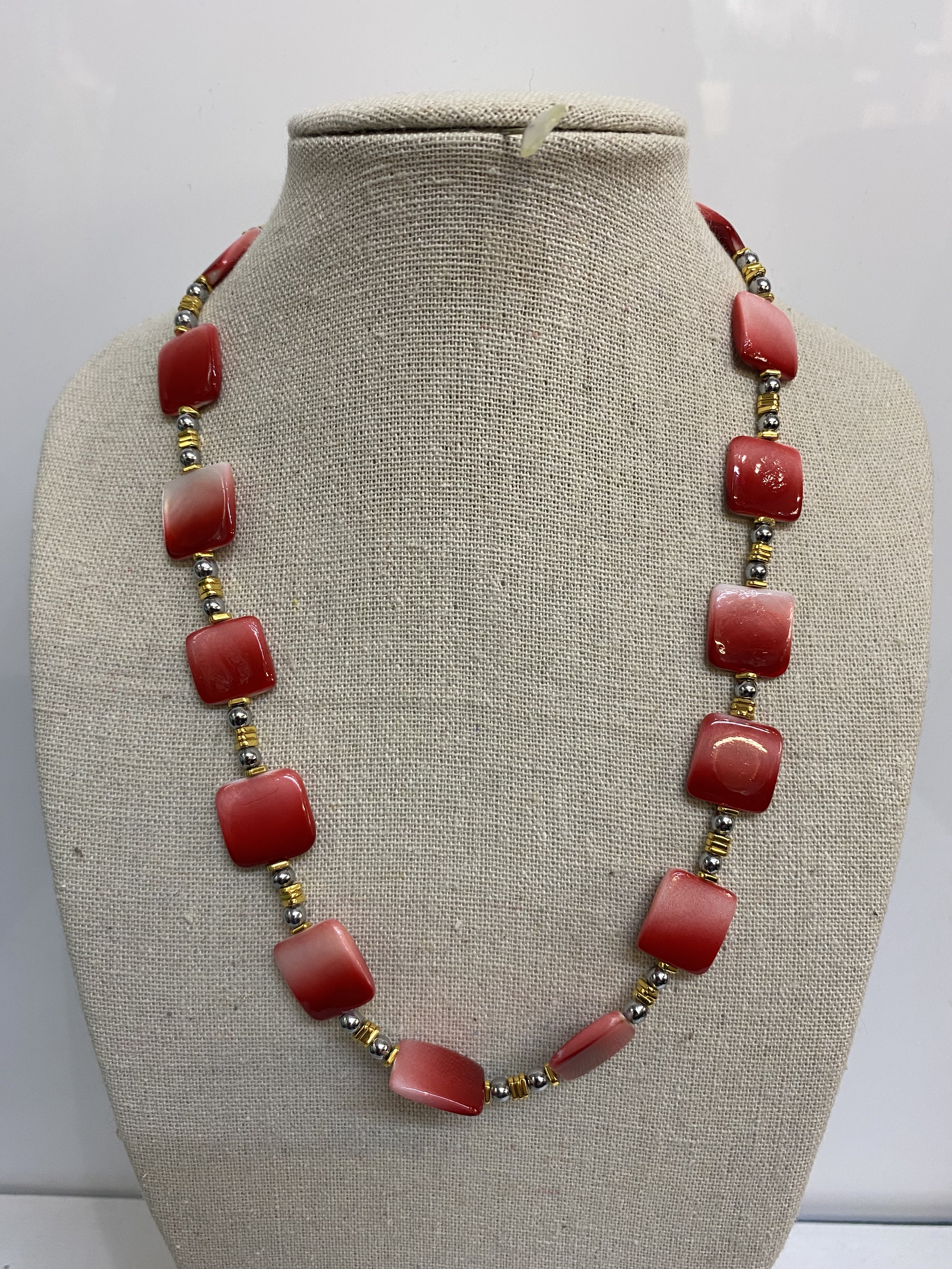 Red Square and Gold Ball Silver Necklace SD37-2738