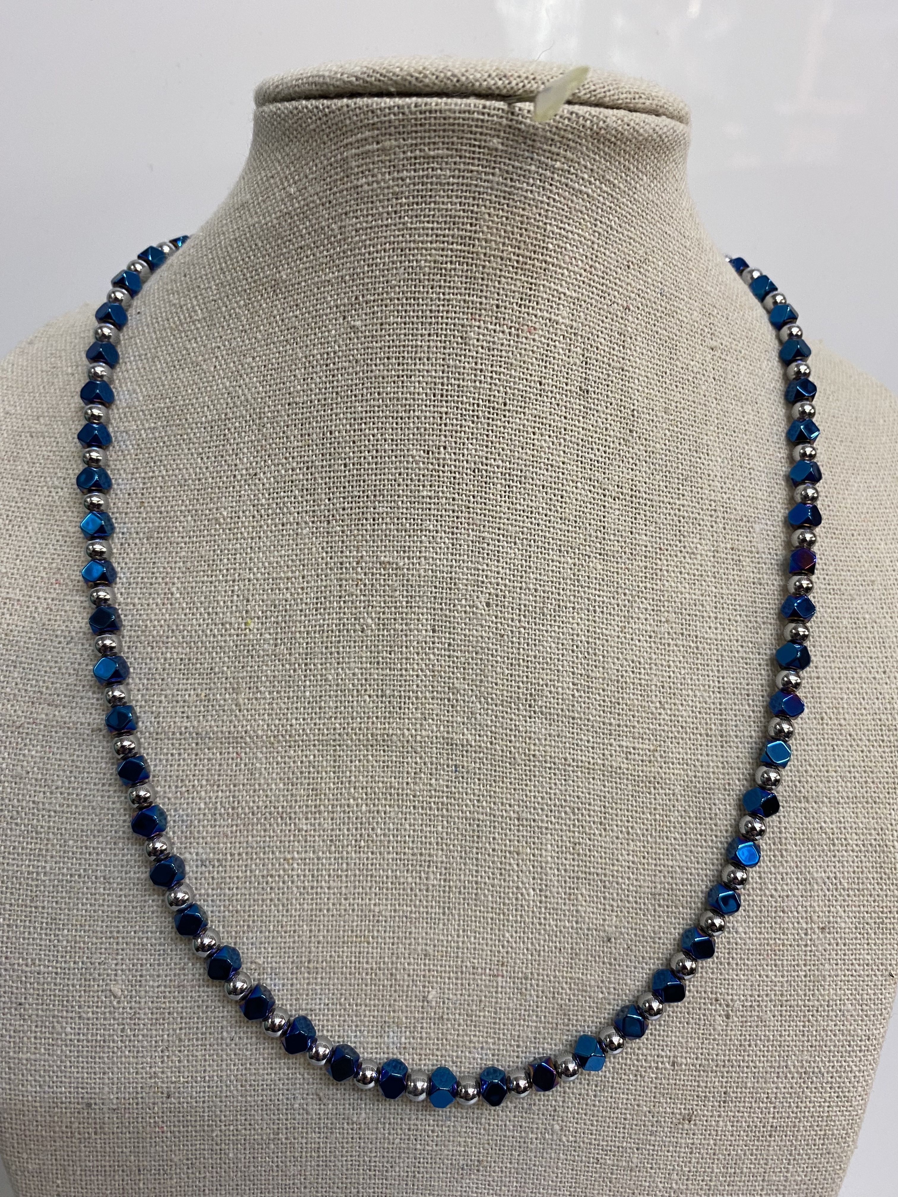 Small Blue and Silver Bead Necklace SD37-2747