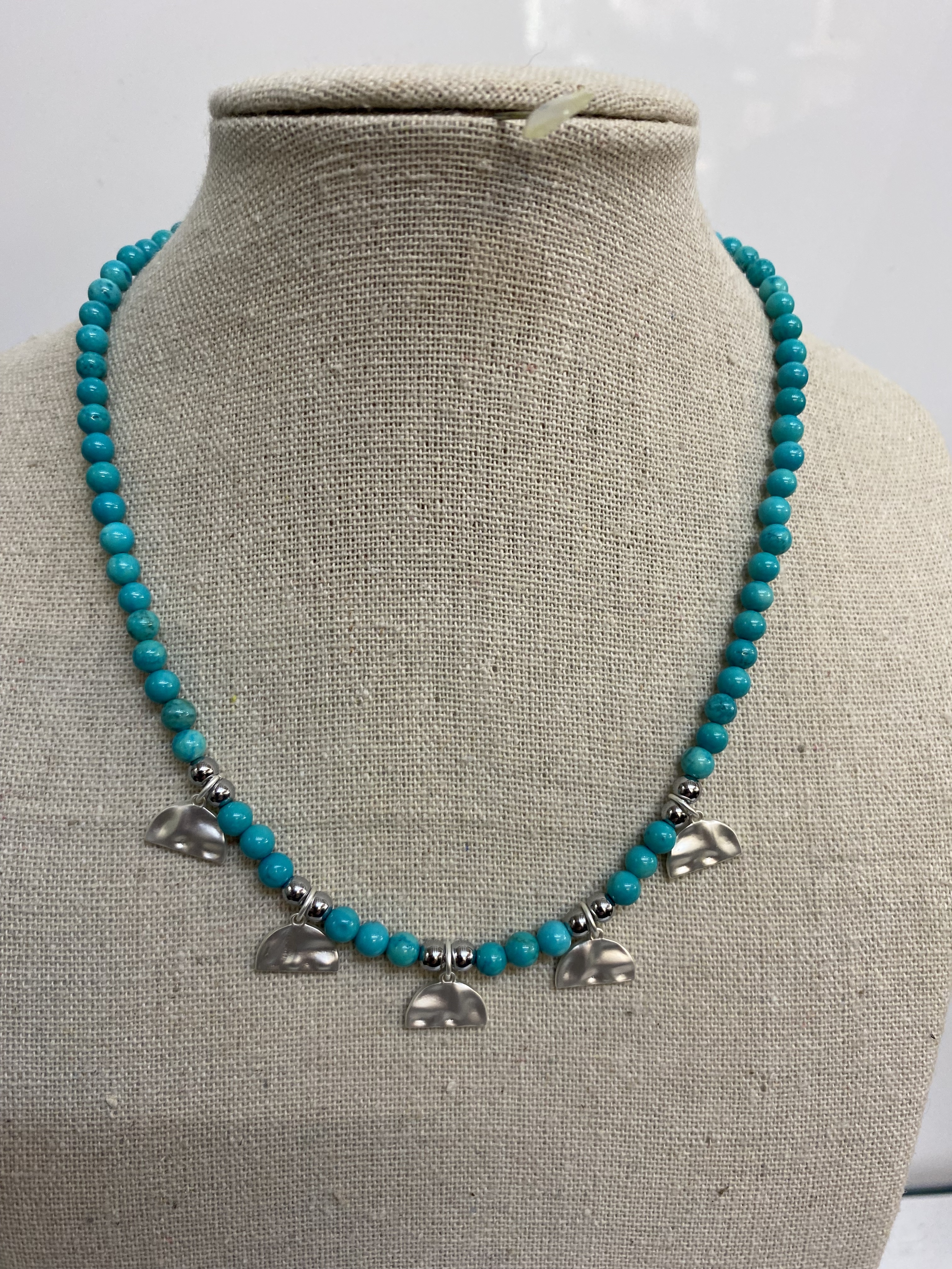 Small Turquoise Bead & Silver Half Disc Necklace SD37-2751