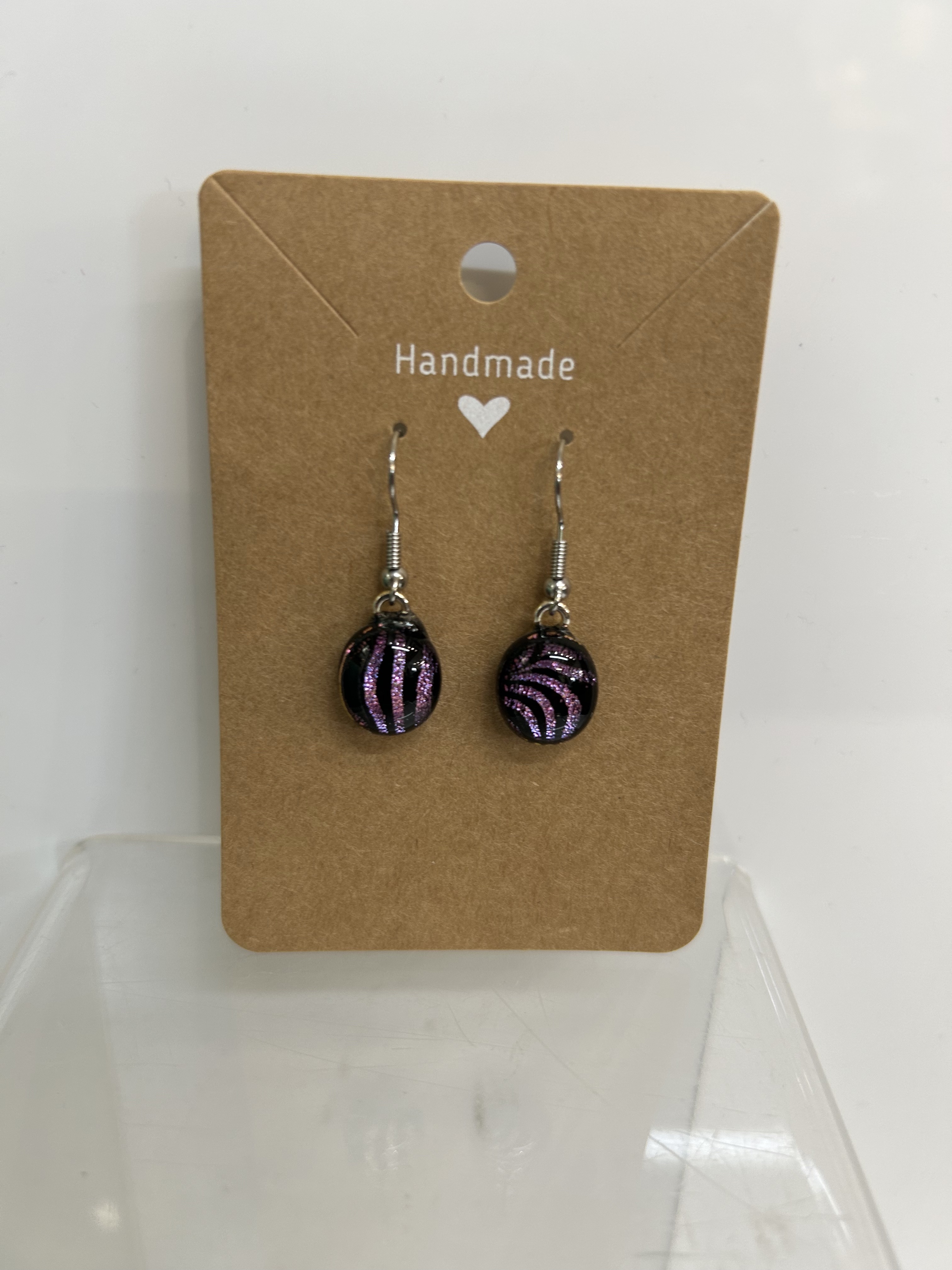 Dichroic Pink Stripe Glass Earrings SMK86-641