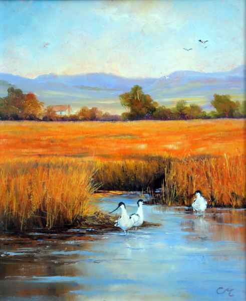Her paintings have been shown widely in Suffolk and Essex in joint and single exhibitions and also in North East England. She has contributed articles in the “International Artist” on “painting the greens of England”. And also in the series of books “How did you paint that? 100 ways to paint Seascapes, Rivers and Lakes”.