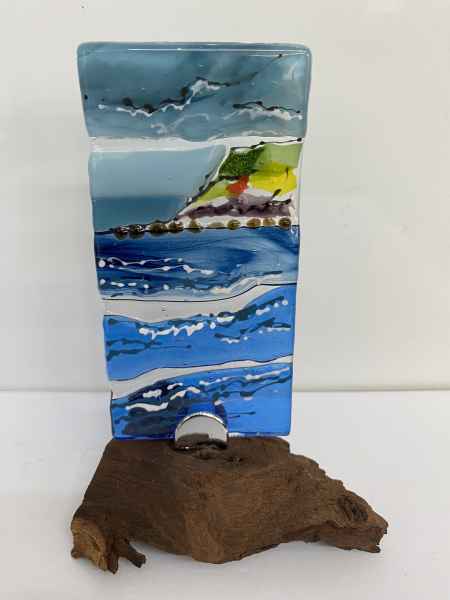 We draw our inspiration from all around, creating one off pieces using various techniques and forms of the glass to achieve our vision. Most of our exhibits draw from the landscape and natural world, the glass naturally highlighting the changing light, affecting how a piece is viewed, This can sometimes be vivid, sometimes subdued in duller conditions. Occasionally the vision requires several firings of about 17-24 hours to create the artwork adding different elements each time.