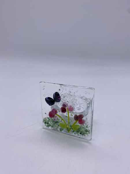 I retired from a busy career as a university employed Nurse Academic in 2016, which provided the opportunity to fully explore my creative skills. I take inspiration from many sources in everyday life and find that techniques employed in other crafts transfer well, using glass as a medium. Handcrafted fused glass provides a personal and unique product.