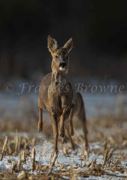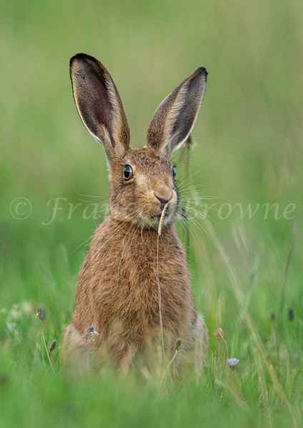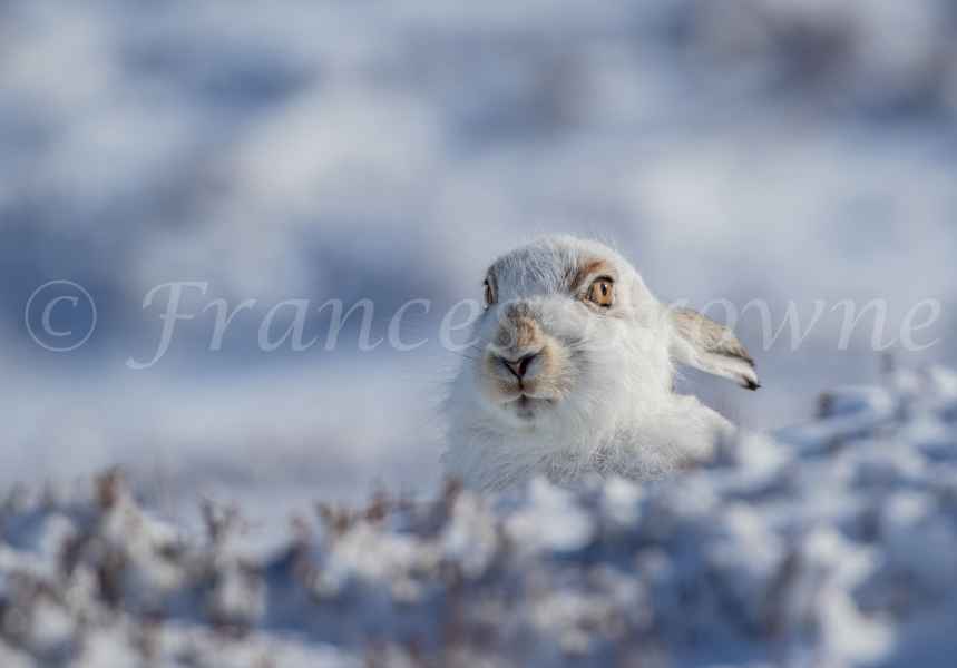 Although Frances loves taking photographs of all wildlife, the shy and secretive brown hares are her favourite. With their amazing eyesight and incredible burst of speed they are difficult subjects to catch on camera. No amount of expensive equipment will make up for good observation skills, endless patience and the ability to sit quietly in a ditch for hours!