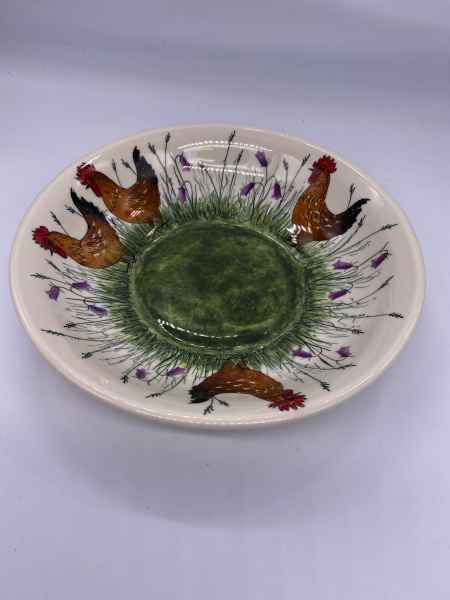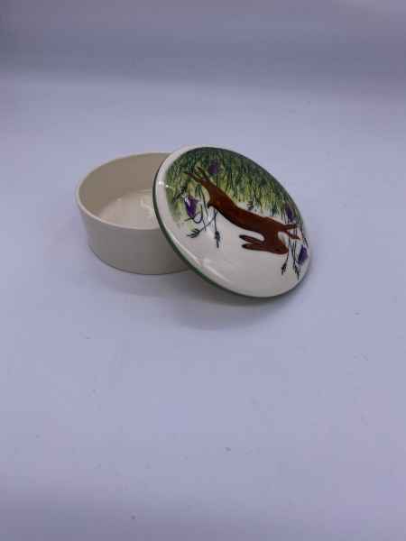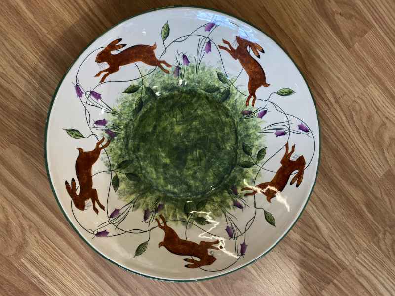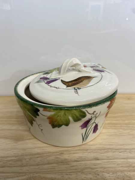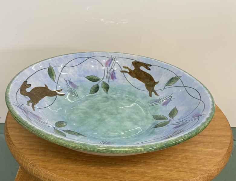 They make functional and decorative high fired earthenware by slip casting and wheel throwing. The designs are original and the shapes inspired by nature and the English Countryside. Their pottery has evolved over many years designing and making their own shapes, models and plaster moulds. In working together Jenny may throw a bowl on the potter’s wheel and after it has been biscuit fired Leon will hand-decorate each piece of pottery individually. The thrown pottery is turned by Jenny with Leon doing the slip-casting, a process they use to make some of their clay shapes.