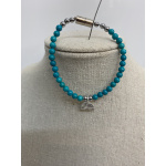 Flat Pearl & Turquoise Bead Silver Bracelet