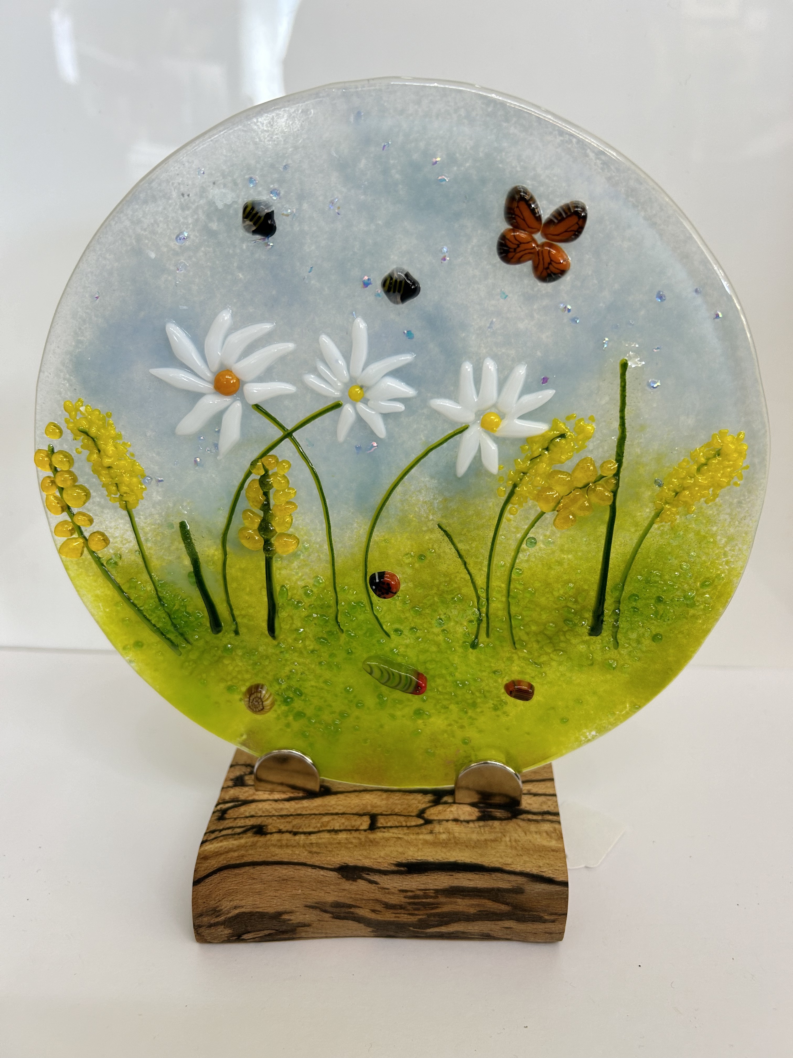 Bullseye Glass Approx dimensions D = 180mm, in spalted alder base The UK delivery prices can be viewed once the item has been added to your basket. For overseas orders, please let us know through the website using the Contact Form