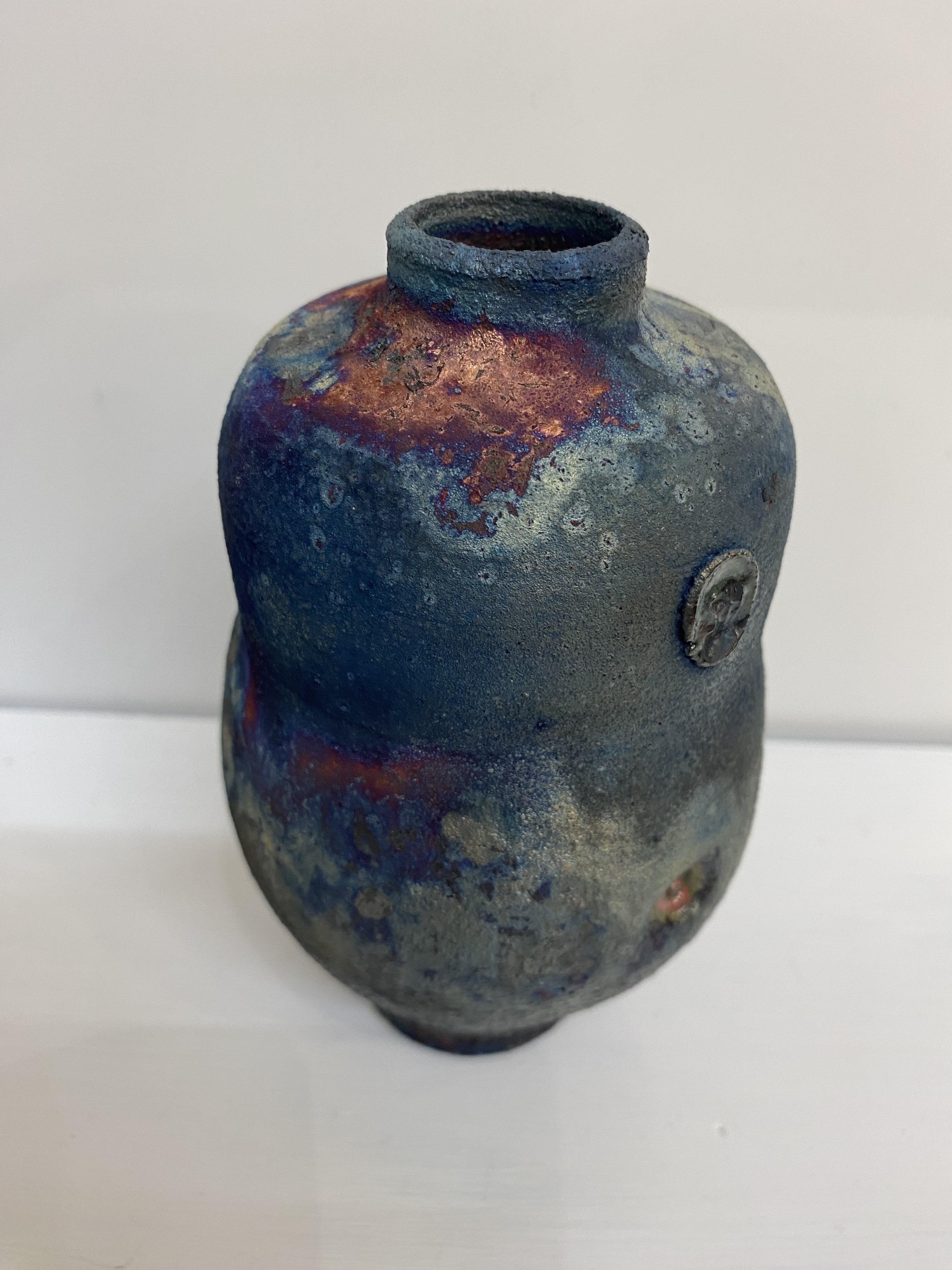 Handmade Raku. Approx dimensions H= 170mm D = 25mm ( at neck )
