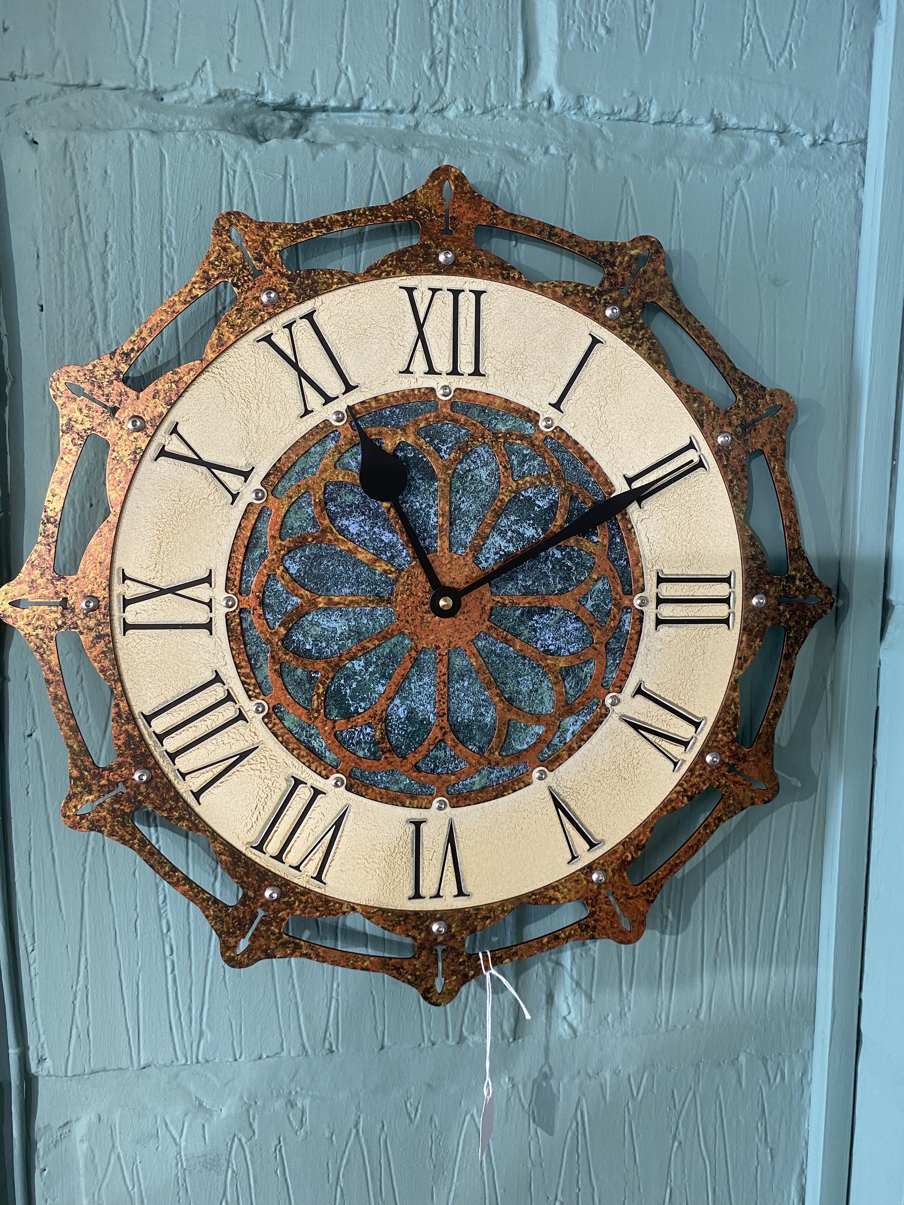 Fabricated from laser cut mild steel with stainless steel details. Approx dimensions 406mm Diameter The UK delivery prices can be viewed once the item has been added to your basket. For overseas orders, please let us know through the website using the Contact Form.