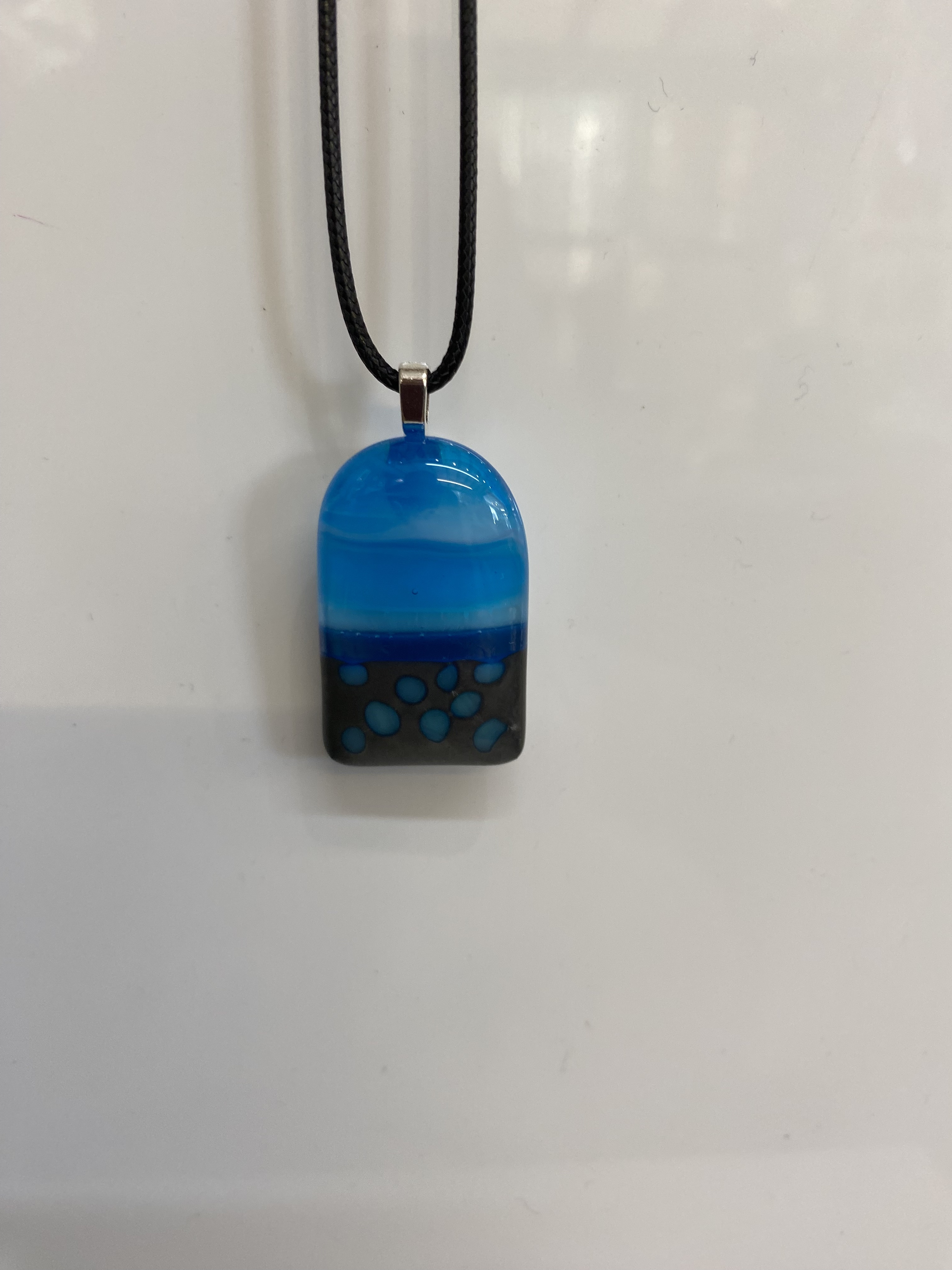 Fused Bullseye Glass Necklace Appoximate dimensions 35mm x 20mm The UK delivery prices can be viewed once the item has been added to your basket. For overseas orders, please let us know through the website using the Contact form.