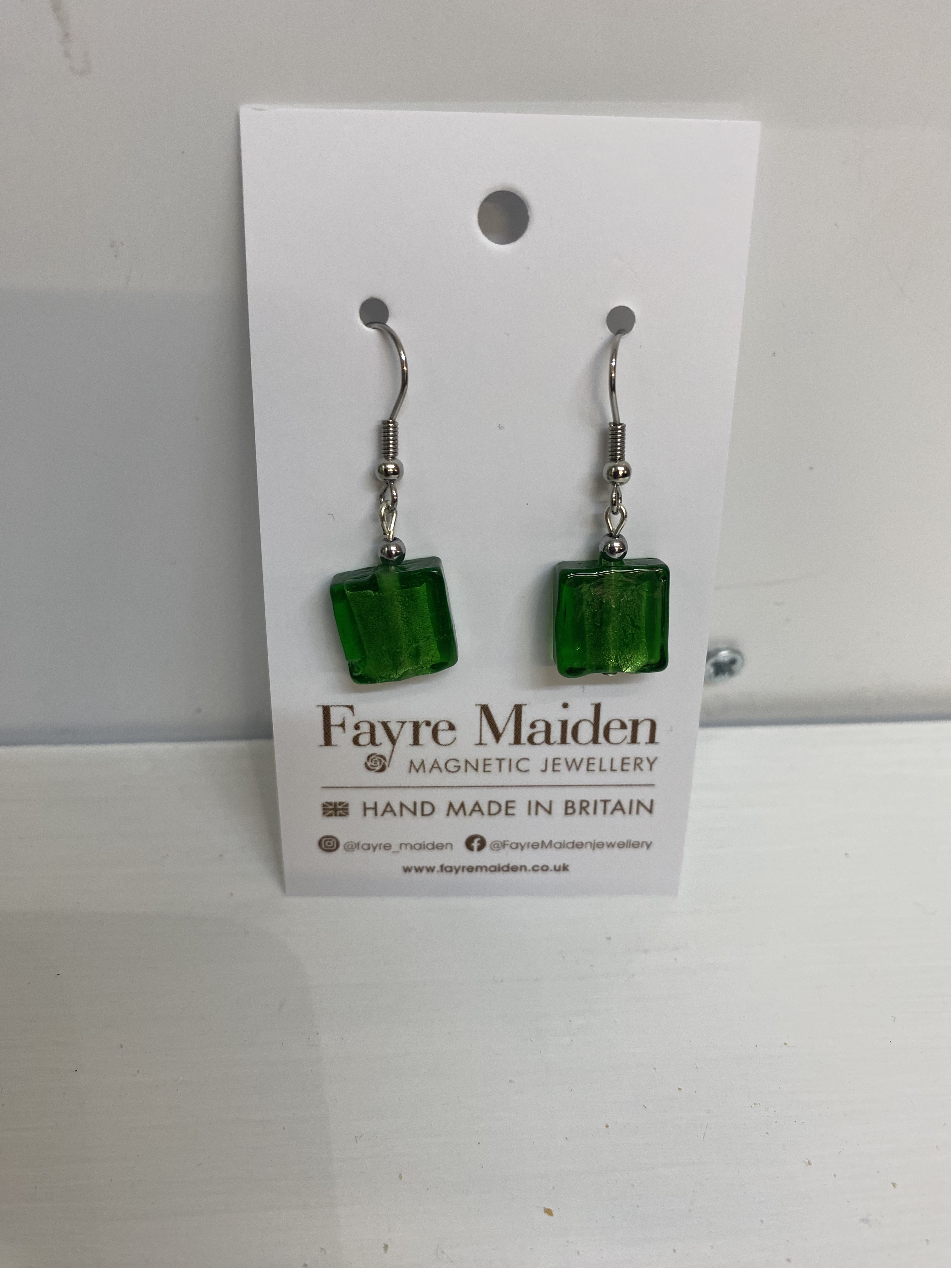 Green Square Silver Earrings SD37-2604