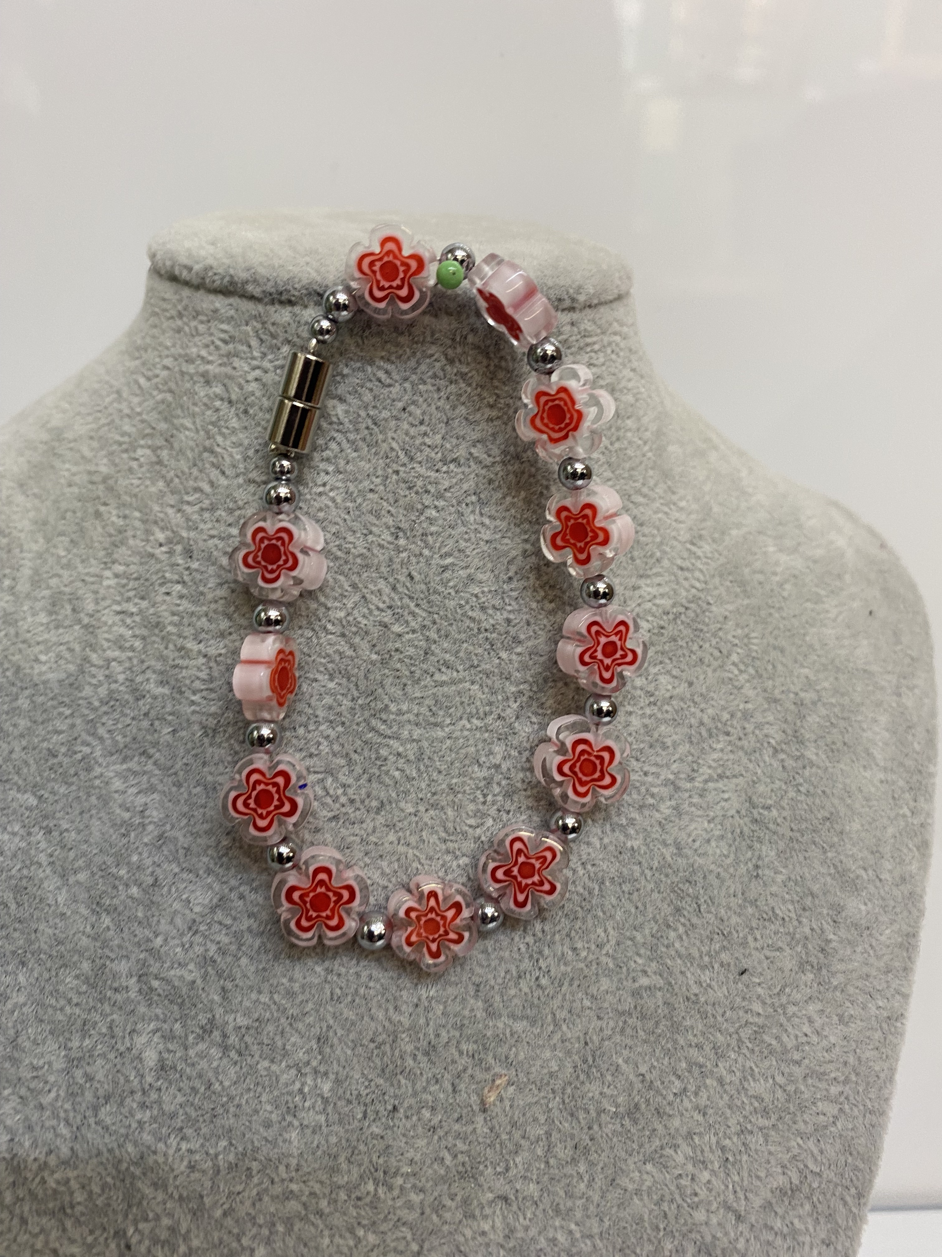 Orange Square & Large Flower Bead Silver Bracelet SD37-2630