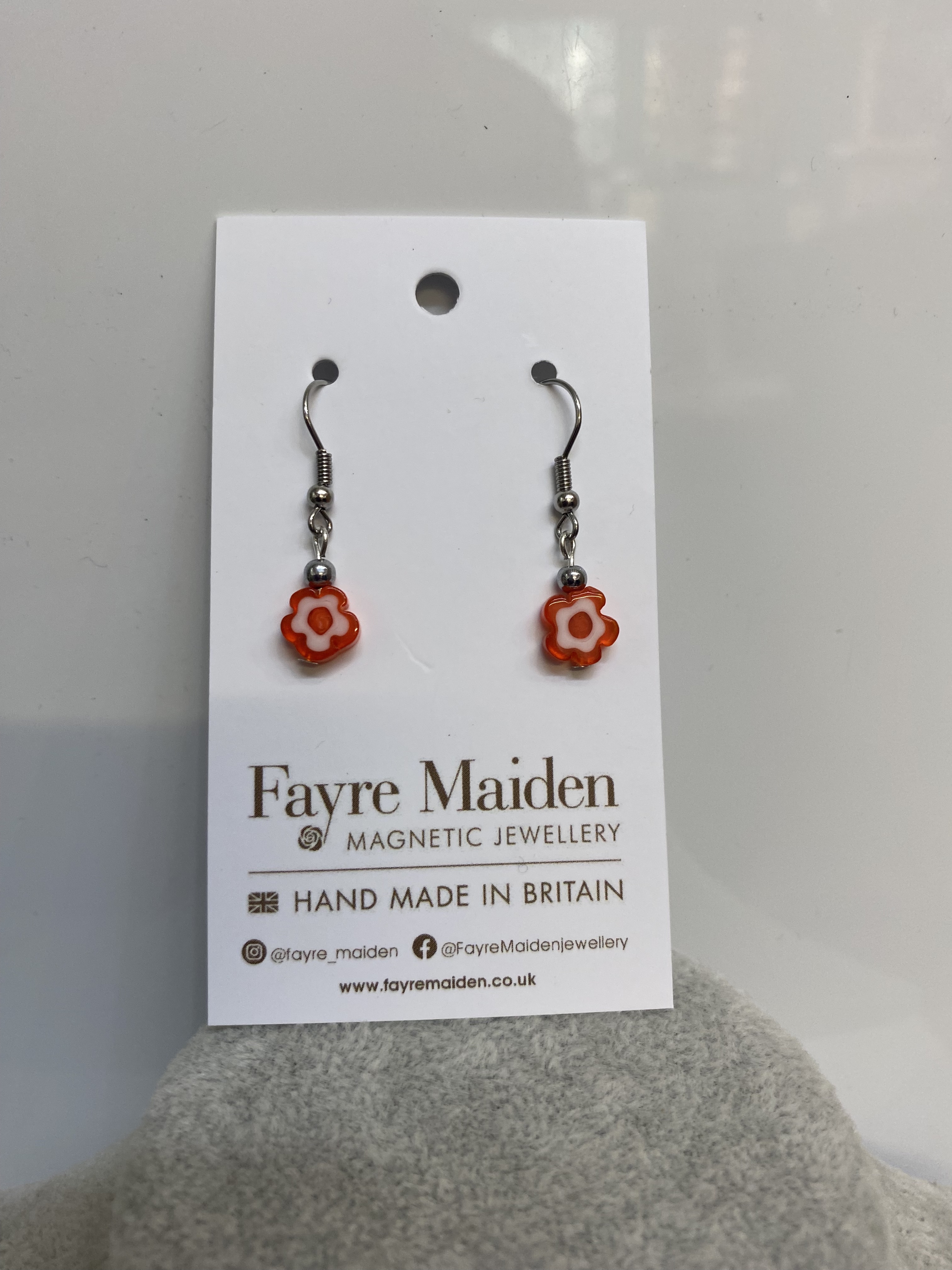 Orange Square & Small Flower Bead Silver Earrings SD37-2647
