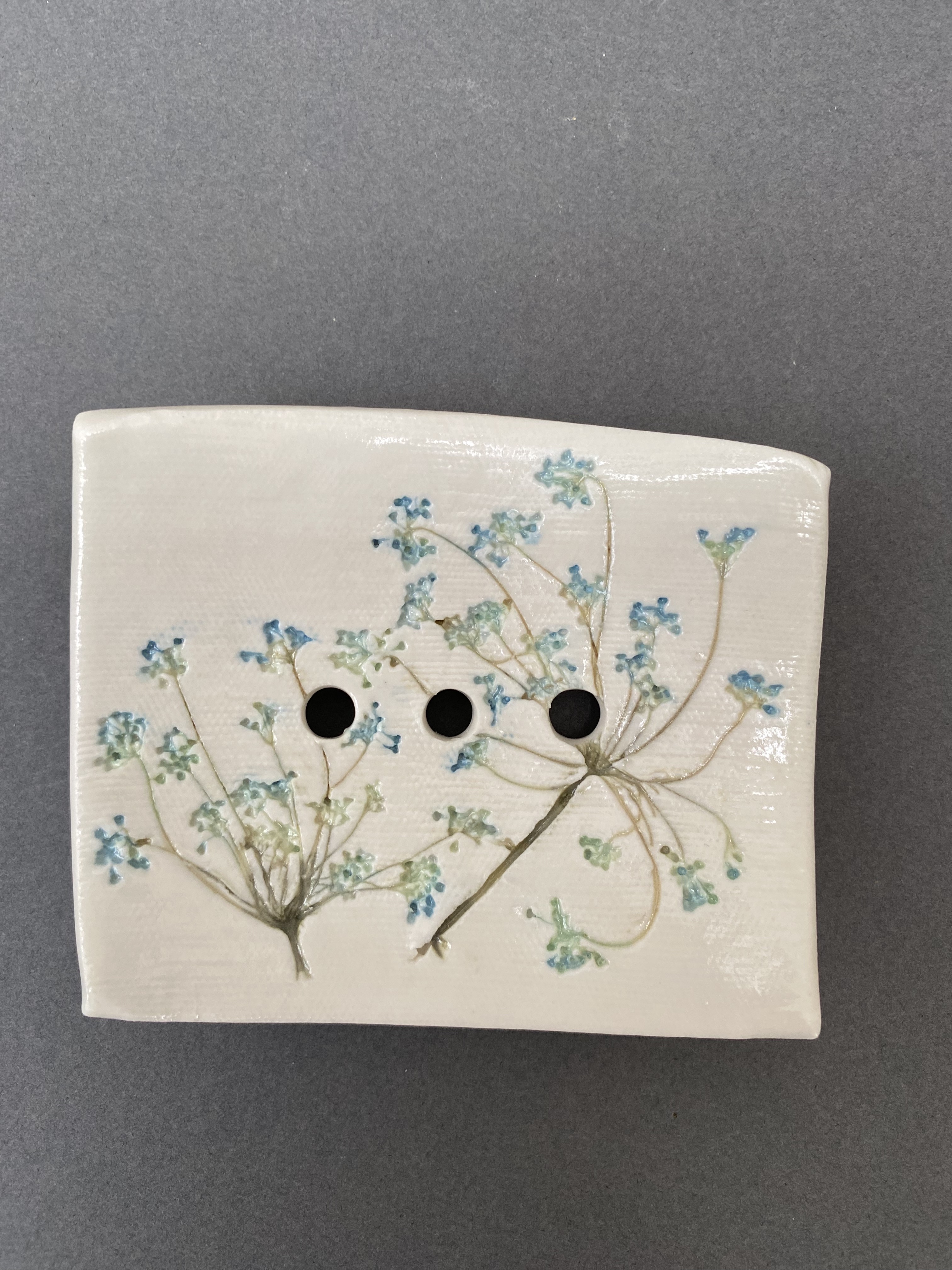 Ceramic Soap Dish   Approx dimensions 110mm x 90mm  H = 25mm The UK delivery prices can be viewed once the item has been added to your basket. For overseas orders, please let us know through the website using the Contact form.