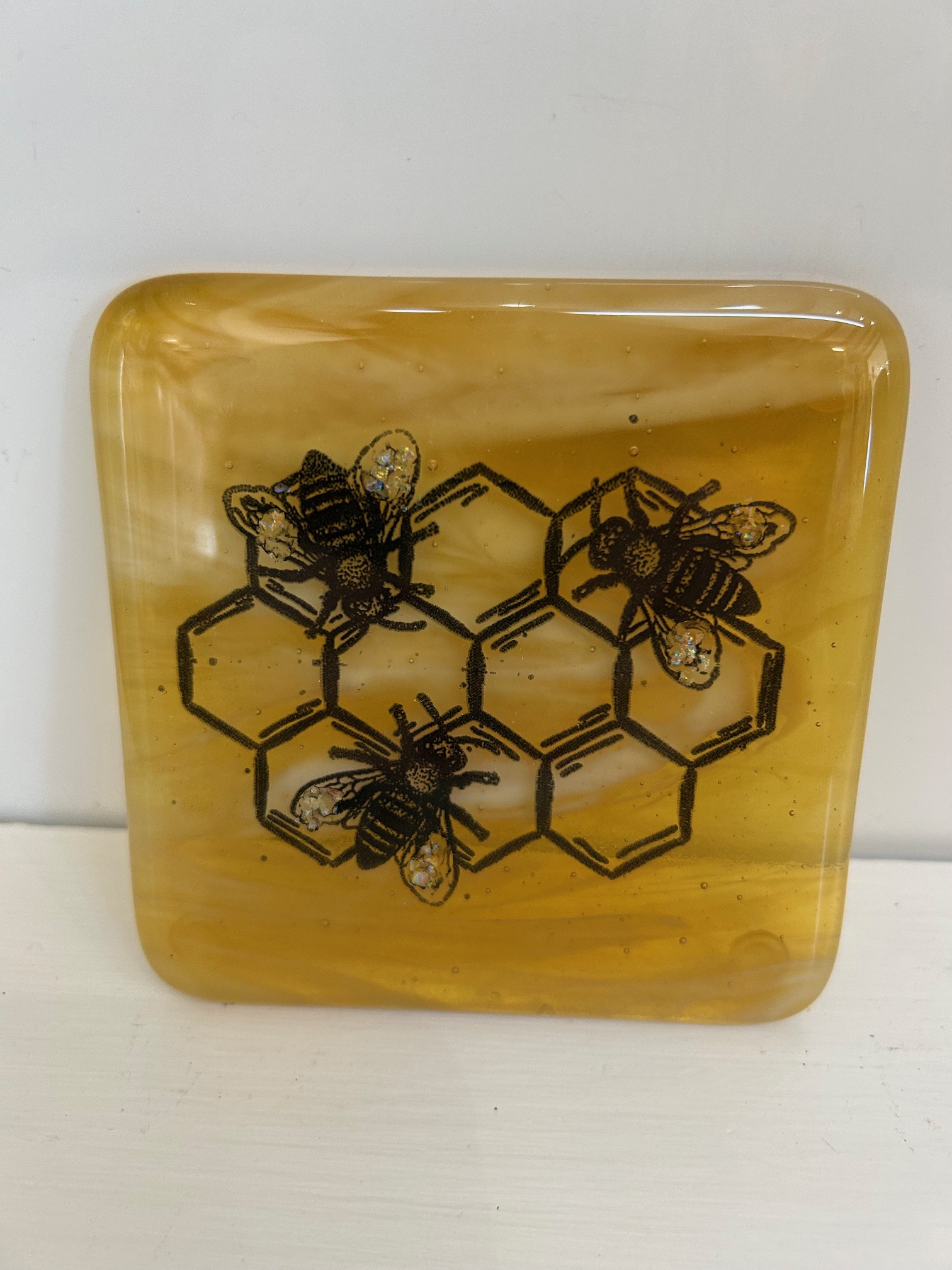 Glass Coaster - Streaky Amber Honeycomb SMK86-594