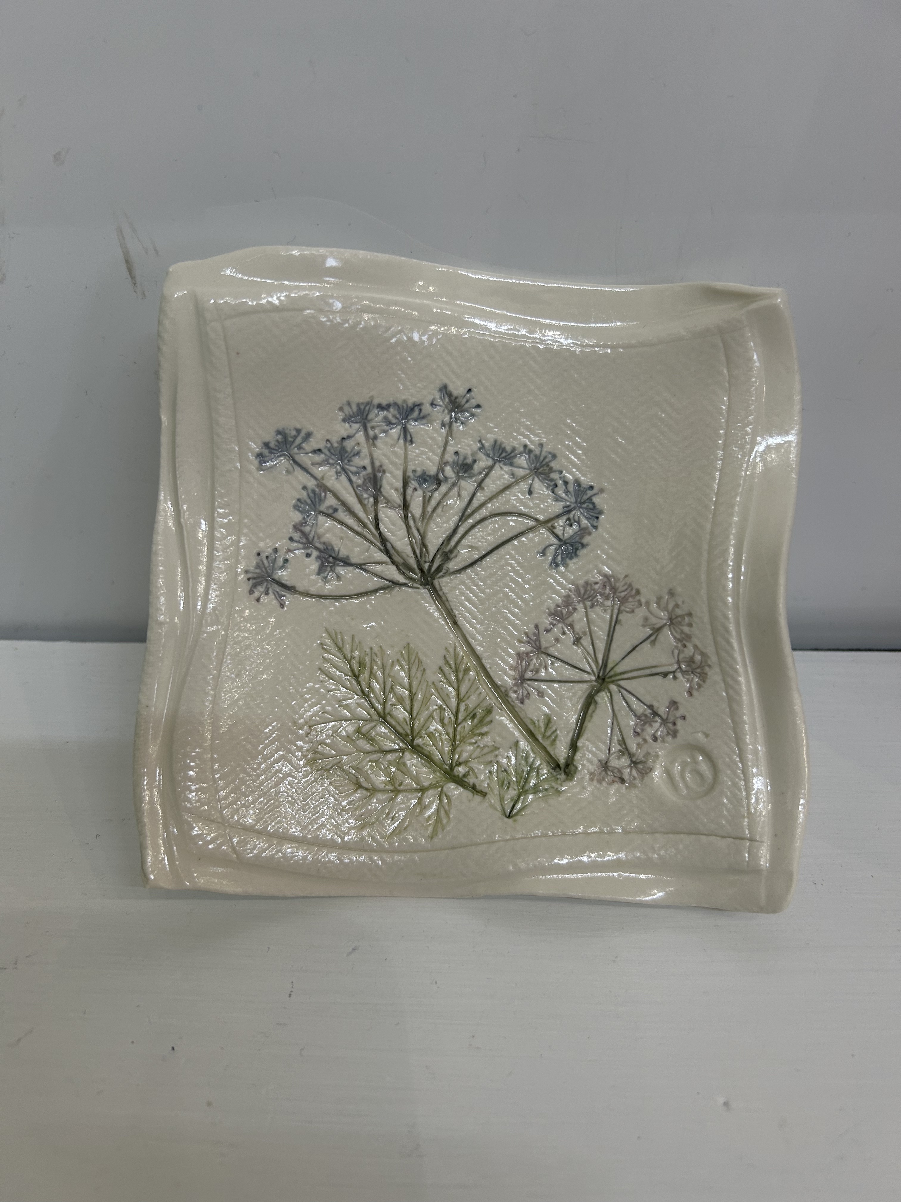 Small Ceramic Dish Approx dimensions 120mm x 120mm H = 30mm The UK delivery prices can be viewed once the item has been added to your basket. For overseas orders, please let us know through the website using the Contact Form.