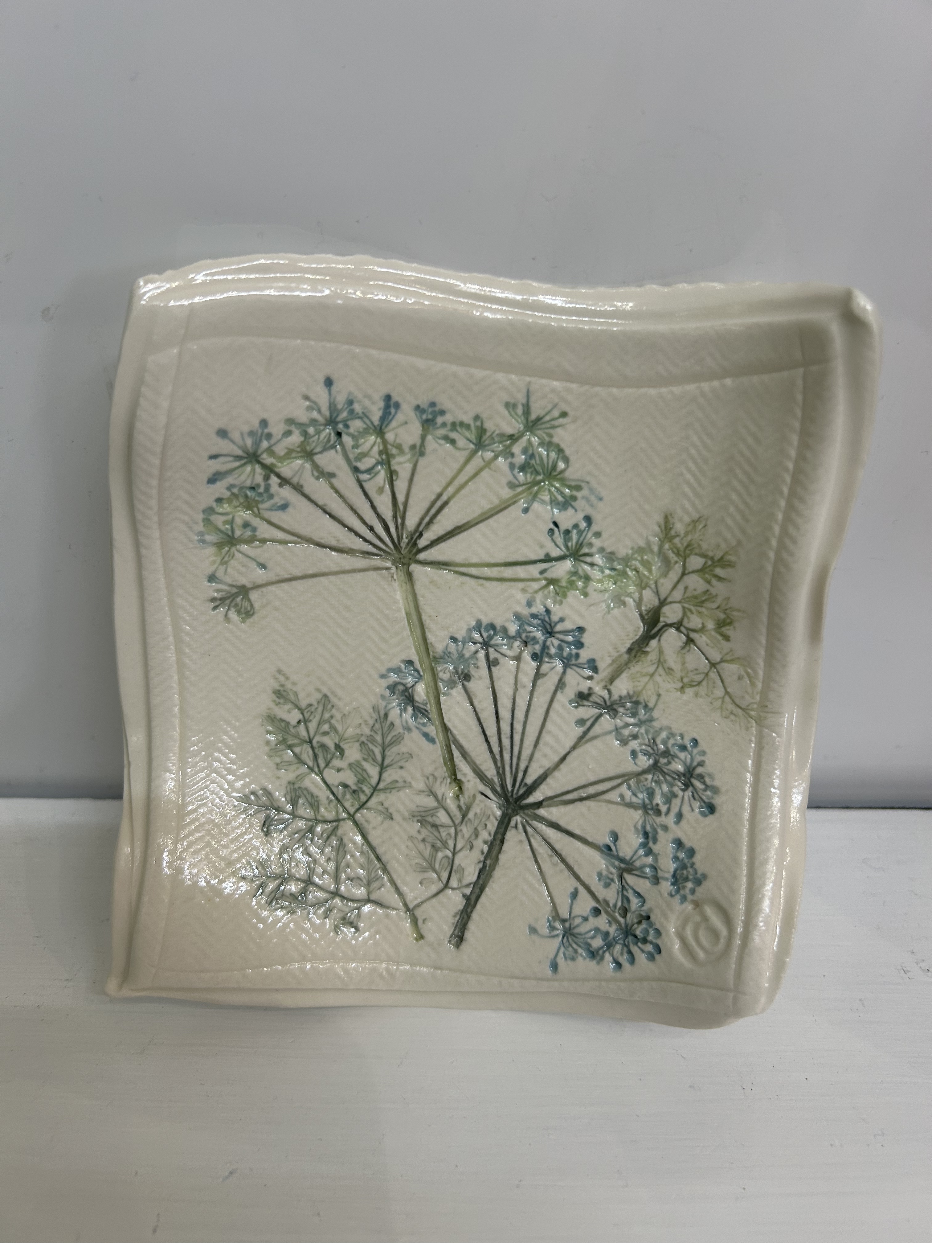 Small Ceramic Dish Approx dimensions 120mm x 130mm H = 30mm The UK delivery prices can be viewed once the item has been added to your basket. For overseas orders, please let us know through the website using the Contact Form.