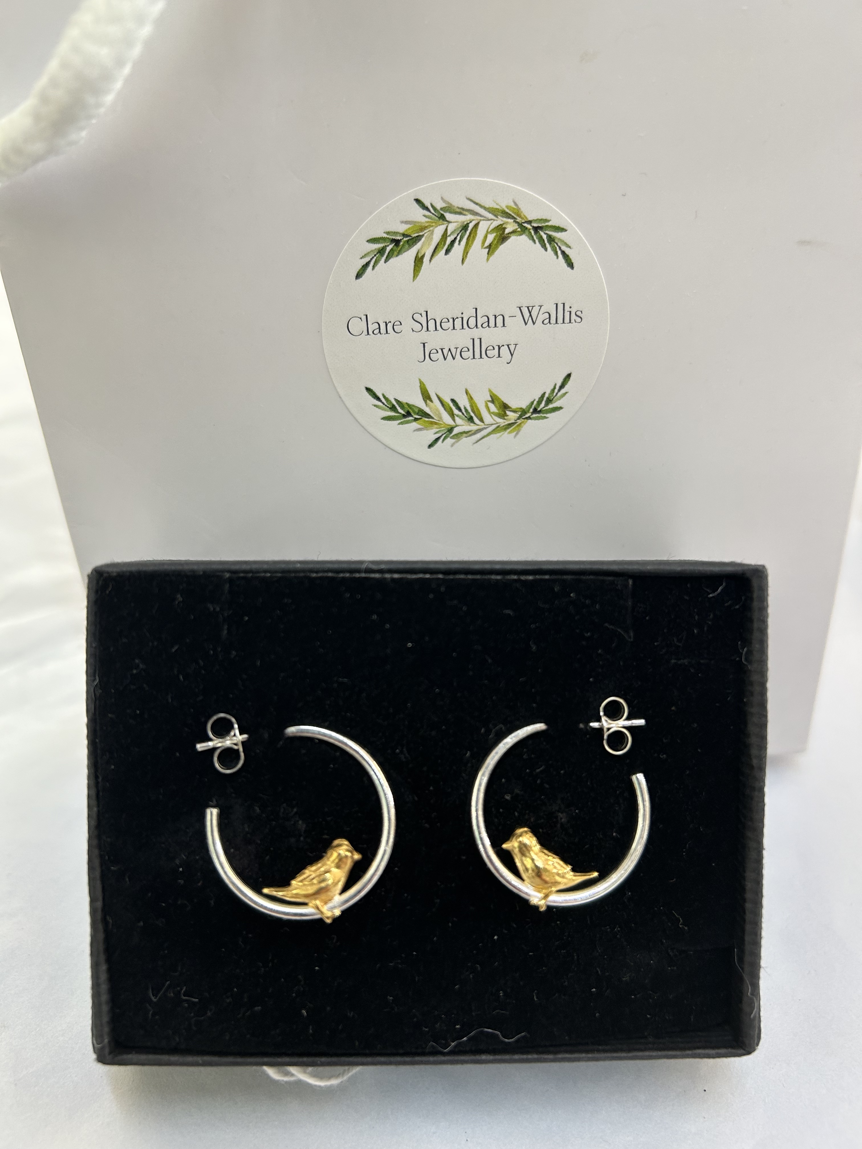 Sterling Silver and Gold Bird Hoops ( Gold Vermeil ) CSW31-036