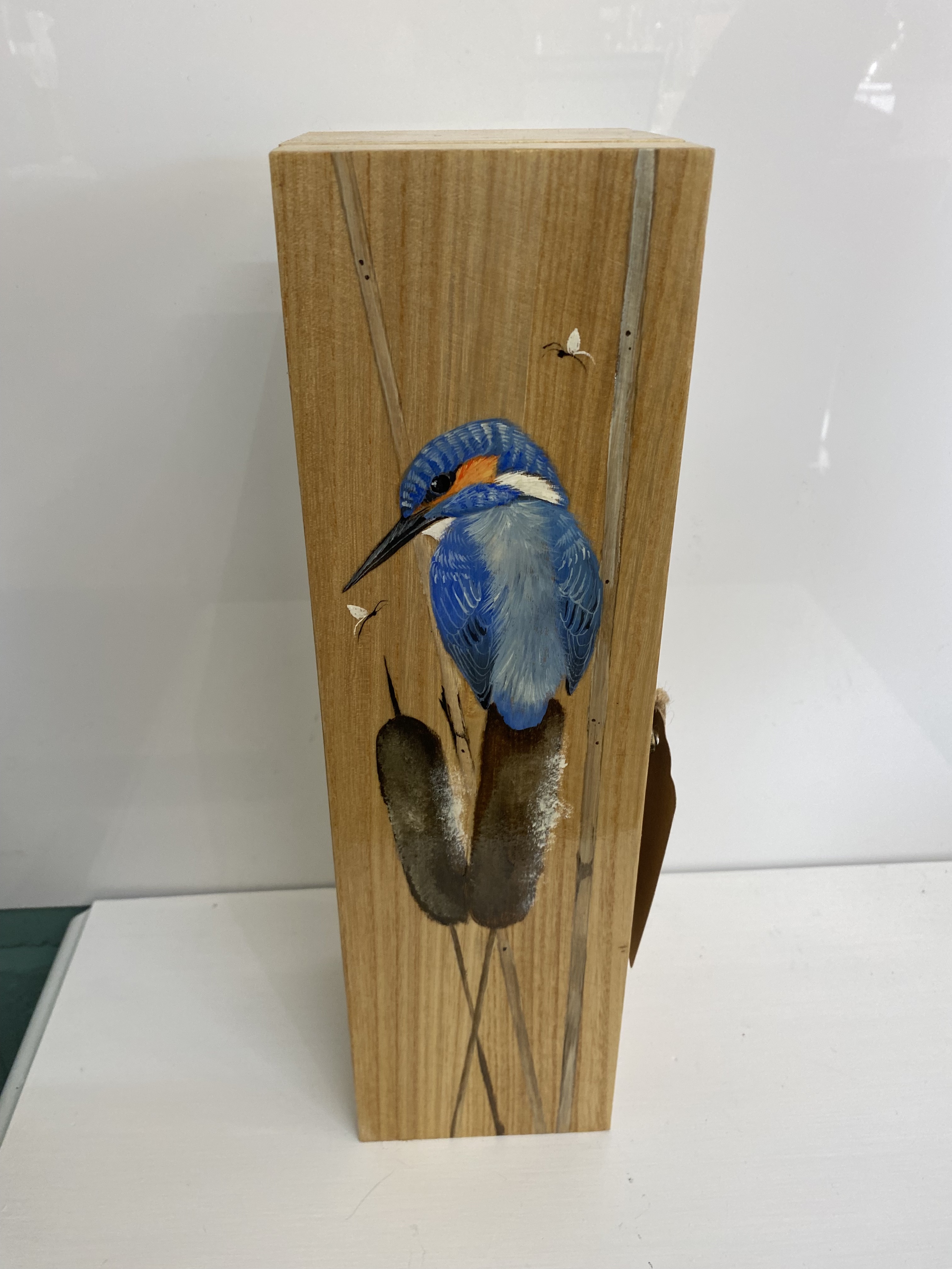 A wooden hand painted Wine Box (H=350mm W=115mm D=100mm) Ideal for home, work or hobby purposes combining usefulness with a beautiful piece of art.